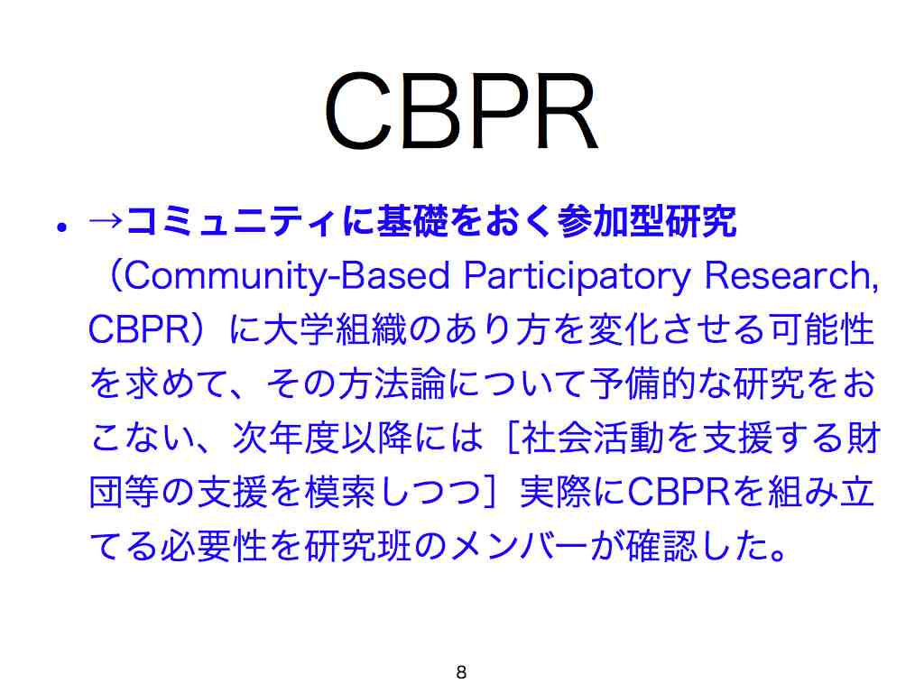 大阪大学グローバルCOEプログラム「コンフリクトの人文学国際研究教育拠点」 研究プロジェクト「在日外国人支援の現場における参与実践」報告会 2009年4月18日(土) 人間科学研究科ユメンヌホールでの発表。研究メンバーのリストなどが除外されています。