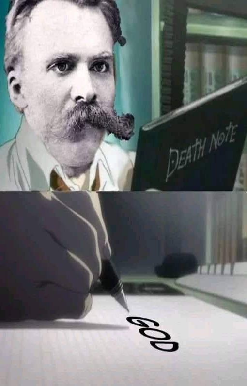 (German: Gott ist tot [ɡɔt ɪst toːt] ⓘ; also known as the death of God)