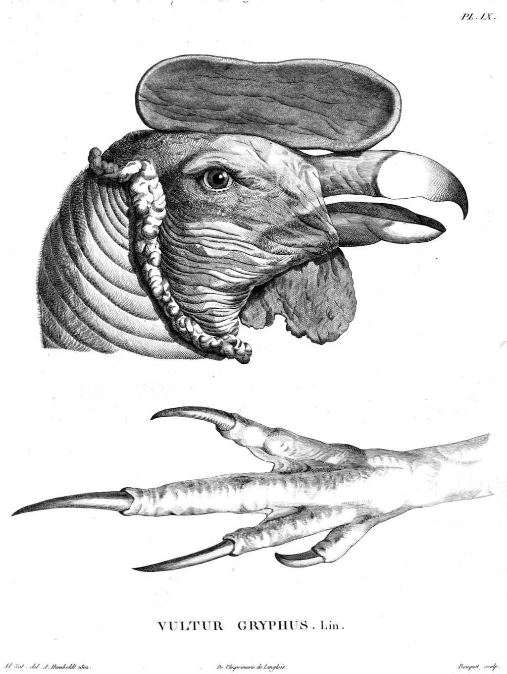 ![]() フンボルトによるアンデスコンドルの描写。彼の詳細な描画の一例である フンボルトは新スペインにおける先住民とヨーロッパ系住民の人口調査を実施し、人種類型と人口分布を地域別・社会的特性別に分類した模式図を発表した [118]。彼は人口を600万人と推定した。[119][120] 彼は先住民がヌエバ・エスパーニャ人口の40%を占めると推定したが、その分布は不均一であった。最も密集していたのはメキシコ中部と南部で、最も疎だっ たのは北部であった。彼はこれらのデータを理解しやすくするため、図表形式で提示した。[121] また、非先住民人口についても調査を行い、白人(スペイン人)、黒人、混血(カスタス)に分類した。[122] 18世紀には、いわゆるクレオールと呼ばれるアメリカ生まれのスペイン人たちが、混血家族の階層的構成を描いた絵画を残している。父親が一方の人種カテゴ リー、母親が別のカテゴリー、そして子孫が第三のカテゴリーに属するという順序で示されており、人種的階層はエリート層がメキシコ社会を見る上で不可欠な 視点であった。[123] フンボルトは、アメリカ生まれのスペイン人は法的にはスペイン生まれの者と同じ人種的地位にあると報告した。しかしブルボン家がスペイン王位を継承して以 来、王室政策はイベリア半島生まれの者を優遇していた。フンボルトは「最も貧しく、教育も知的教養もないヨーロッパ人ですら、新大陸生まれの白人より自分 の方が優れていると考えている」と観察した。[124] この主張の真実性、およびそこから導かれる結論は、新大陸の高官職の40%から60%がクレオールによって占められていたことを考慮すると、表面的である とか政治的動機によるものだと、一部の著者によってしばしば争われてきた。[125][126] スペイン統治後期には、一部のクレオールと半島生まれの白人との敵意が深刻な問題となり、クレオールは次第に王室から疎外されていった。フンボルトは、王 政の暴政とアメリカ合衆国における新たな統治モデルの事例が、ヌエバ・エスパーニャにおける白人社会の結束を蝕んでいると評価した。[127] フンボルトの新スペインにおける人種論は、古典的自由主義者で啓蒙主義者であるミチョアカン州司教候補マヌエル・アバド・イ・ケイポの陳情書に影響を受け た。ケイポは自らフンボルトに、社会経済状況を批判しその解消策を提言した印刷済みの陳情書をスペイン王室宛てに手渡したのである。[128][126] ある学者は、フンボルトの著作にはアメリカ大陸の幻想的な描写が含まれる一方、その住民は省かれていると指摘する。ロマン主義思想に根ざしたフンボルトは 「…自然は人間が注意深く歪めるまでは完璧である」と信じていたという。[129] さらに、彼は自然の中に存在する人間社会をほとんど無視していたと評価される。先住民を「野蛮」あるいは「取るに足らない」と見なす視点は、彼らを歴史的 描写から排除した。[129] これに対し他の学者は、フンボルトが著作の大部分を奴隷、先住民、混血のカスタス、そして社会全般の状況を記述することに費やしたと反論する。彼はしばし ば奴隷制[13]や先住民らが置かれた非人道的な状況への嫌悪を示し、スペイン植民地政策を頻繁に批判した。[130] フンボルトは主に芸術家ではなかったが、優れた画力を持ち、特定の場所とその自然環境を視覚的に記録することができた。彼の多くの素描は、数多くの科学出 版物や一般向け出版物の挿絵の基礎となった。フンボルトの影響を受けた画家たち、例えばヨハン・モーリッツ・ルゲンダスは彼の足跡を辿り、フンボルトが訪 れて記録した同じ場所を描いた。例えばメキシコの玄武岩地形は、彼の『コルディエラ山脈の眺め』の挿絵となったのである。[131][132] ヨーロッパを離れている間に収集した膨大な科学的・政治的・考古学的資料を編集し出版することが、今やフンボルトにとって最も切実な願いとなった。磁気偏 角の法則を調査するためジョゼフ・ルイ・ゲイ=リュサックと共にイタリアへ短期間旅行した後、ベルリンで2年半滞在し、1808年の春にパリに定住した。 彼がそこに拠点を置いた目的は、自身の偉大な著作を出版するために必要な科学的協力を確保するためであった。当初はわずか2年で完了すると期待していたこ の巨大な作業は、結局21年を費やすことになり、それでもなお未完のままだった。  |