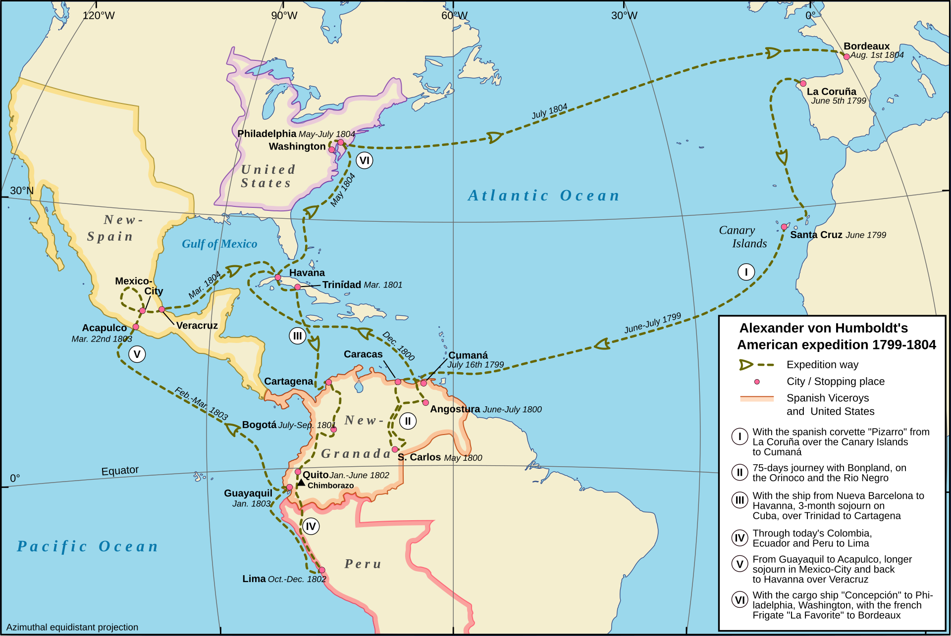 1799年から1804年にかけて、フンボルトはアメリカ大陸を広く旅し、スペイン以外のヨーロッパ人科学者の視点から初めてこの地を探検し記述した。こ