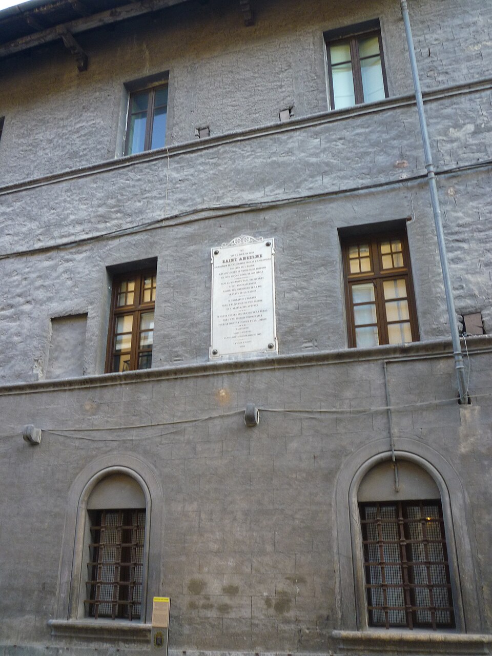 伝記![]() イタリア、アオスタのアンセルムス通りにある、アンセルムスの推定出生地を記念する銘板(この特定は誤りである可能性がある)[5] 家族 アンセルムスは1033年4月から1034年4月の間に、上ブルゴーニュ地方のアオスタまたはその周辺で生まれた。[6] この地域は現在イタリア共和国の一部だが、アオスタは1032年に子孫のいないルドルフ3世が死去するまで、カロリング朝後のブルゴーニュ王国の一部で あった。[7] その後、皇帝コンラート2世とブロワ伯オド2世が後継者をめぐる戦争を起こした。モーリエンヌ伯ウーベルト・ル・ブラン(白手)は戦功を顕著に立て、アオ スタ司教の世俗領地から切り離された新たな伯領を授けられた。その後、ウーベルトの息子オットーは、妻アデライデ[8]を通じて広大なスーザ辺境伯領を継 承することを認められた。これは、アキテーヌ公ウィリアム5世の下で独立したイタリア王国樹立を支持した妻の叔父の家族を差し置いての決定であった。オッ トーとアデライデが統合した領地は、西アルプスの最重要峠を掌握し、後にサルデーニャ王国とイタリア王国を統治するサヴォイア家(王家)の基盤となった。 この時代の記録は乏しいが、アンセルムスの直系家族双方は、これらの決定[12]によって遠縁の親族[13]に財産を奪われたようだ。父グンドルフ [14]あるいはグンドルフ[15]あるいはゴンドゥルフ[16]はロンバルド貴族[17]で、おそらくアデライデのアルドゥイーニ家の叔父もしくは従兄 弟の一人だった。[18] 母エルメンベルゲ[16]はほぼ間違いなくコンラート平和公の孫娘であり、アオスタのアンセルムス系司教家と、コンラートに優先権を奪われたヘンリー2世 の相続人双方の血筋を引いていた[18]。この結婚はおそらく政治的理由で取り決められたが、1034年8月1日にコンラートがブルゴーニュ併合に成功し た後、彼に対抗する手段としては無効であった。[19] (後に司教ブルハルトは皇帝支配に反旗を翻したが敗北し、最終的にリヨン教区へ転任させられた。)エルメンベルクは婚姻においてより裕福な側であったよう だ。グンドルフは妻の町へ移り住み[7]、彼女は大聖堂近くの宮殿と谷間の別荘を所有していた。[20] アンセルムスの父は時に苛烈で暴力的な気性だったと言われる[14]が、当時の記録では単に財産を浪費し過ぎるか無頓着だったとしか描かれていない [21]。一方、母エルメンベルクは忍耐強く敬虔な信仰心を持つ[14]人物で、家督の管理を慎重に行い、夫の欠点を補っていた。[21] 後年、ベック修道院を訪れた三人の親族の記録が残っている。フォルケラルドゥス、ハイモ、ライナルドゥスである。最初の者はアンセルムスの名声を利用しよ うと繰り返し試みたが、既に別の修道院との繋がりがあったため拒絶された。一方、アンセルムスが他の二人をベック共同体へ誘う試みは成功しなかった。 [22] |
