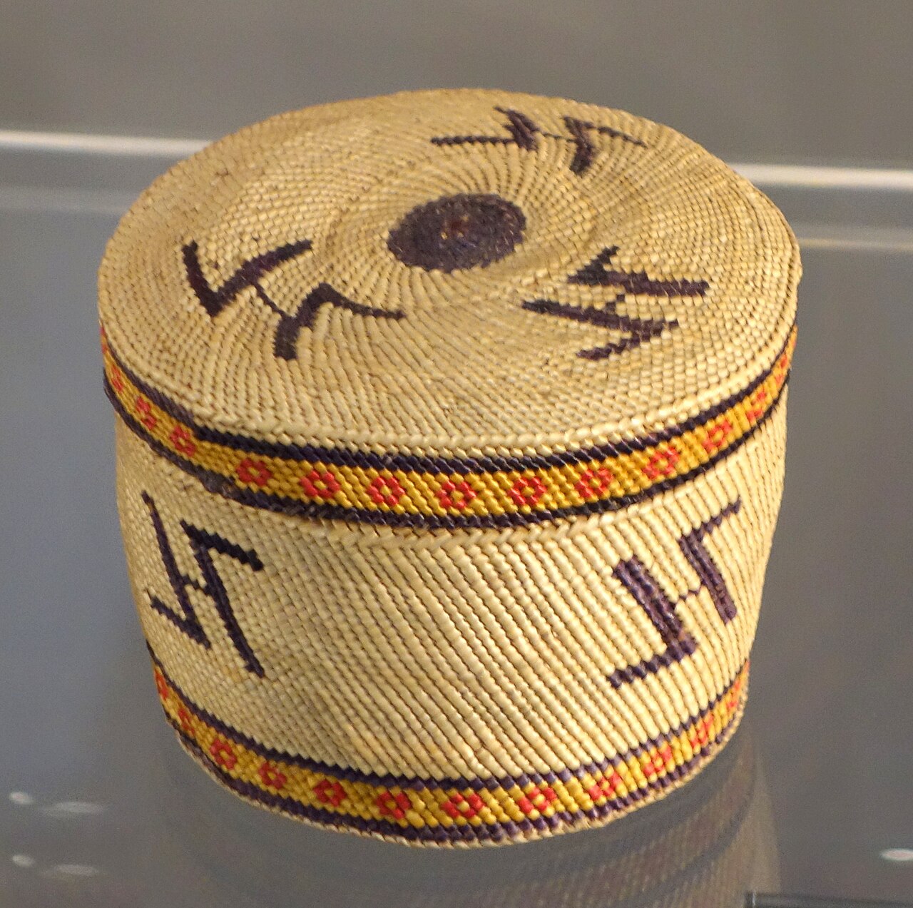 ![]() Cesta propia de la artesanía de los makah (Noroeste de Estados Unidos), finales del siglo xix o comienzos del XX. マカ族(アメリカ北西部)の工芸品であるかご。19世紀末から20世紀初頭のものだ。 |