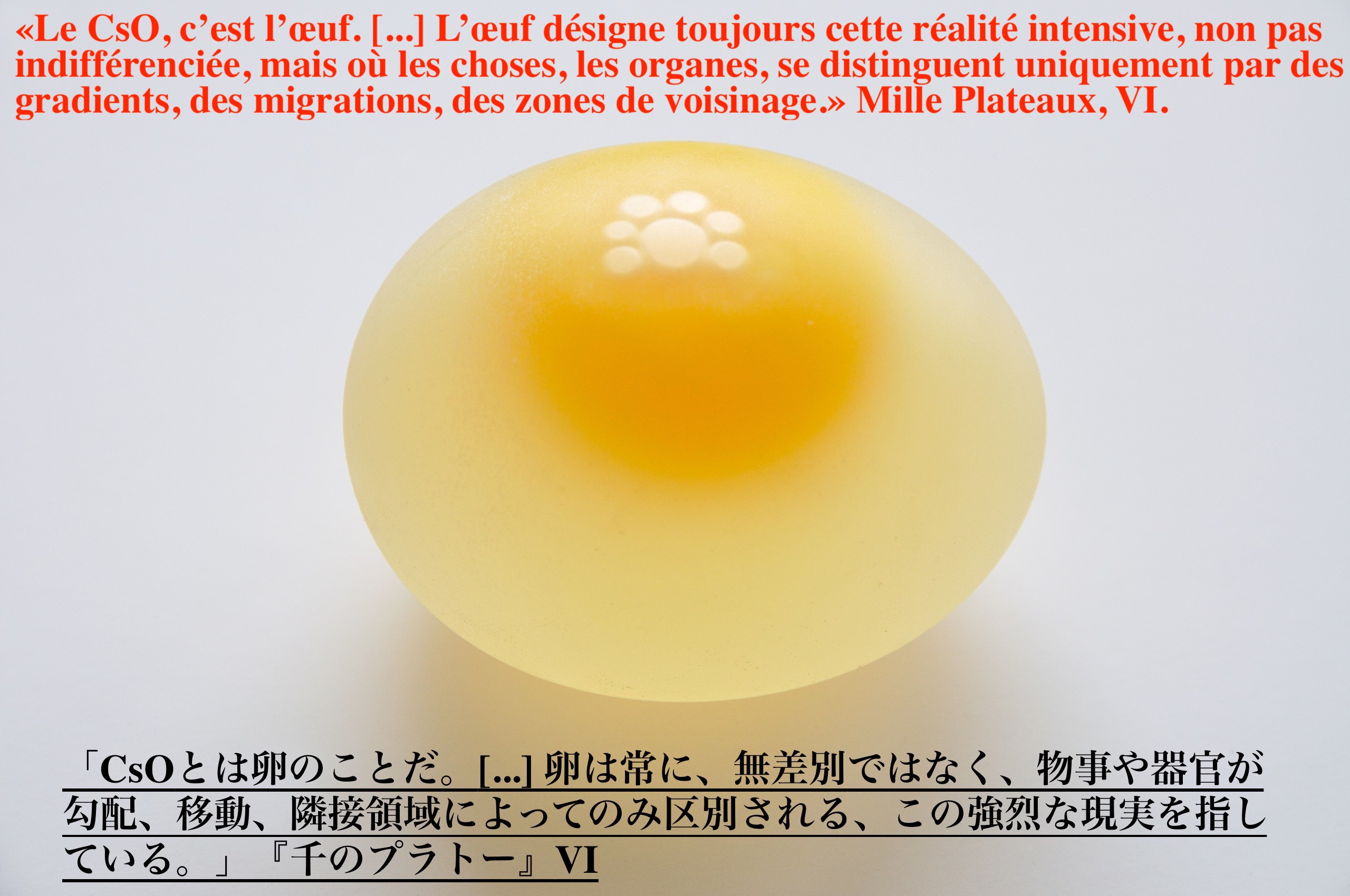 卵は常に、無差別ではなく、物事や器官が勾配、移動、隣接領域によってのみ区別される、この強烈な現実を指している。」『千のプラトー』VI |