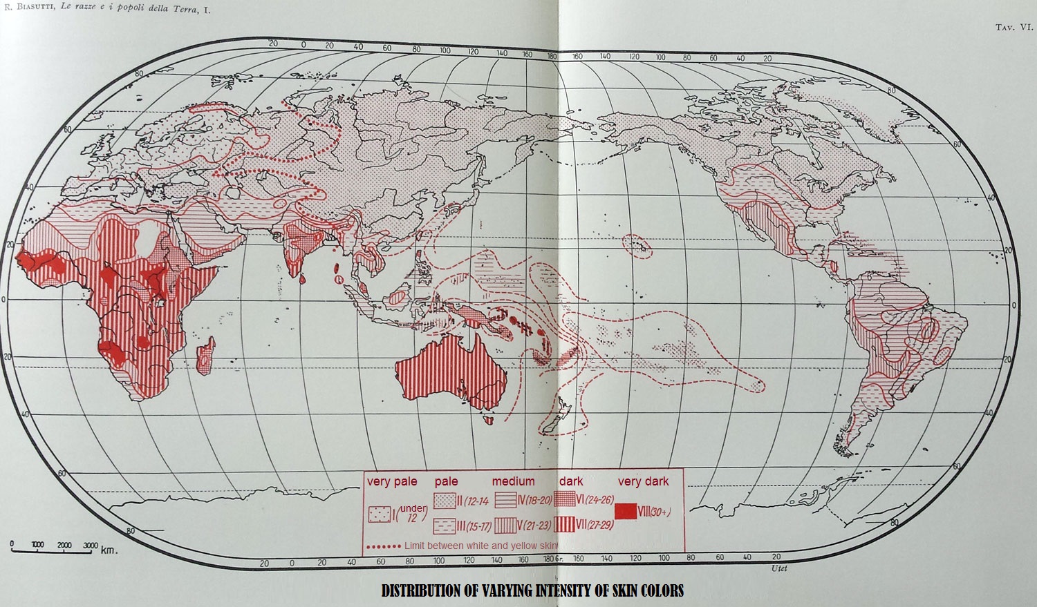 populations, by R. Biassutti in the Von Luschan's chromatic scale for