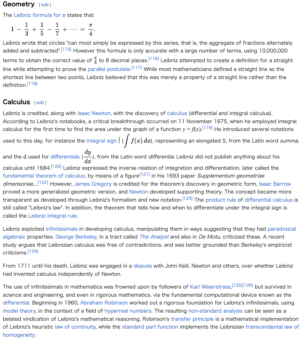 て、微分積分学の主要なアイデアを発展させたことである。数学者たちは一貫して、微積分の慣用的な表現としてライプニッツの表記法をより正確な表現として