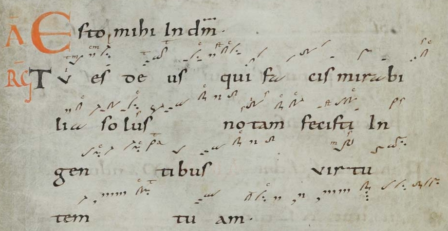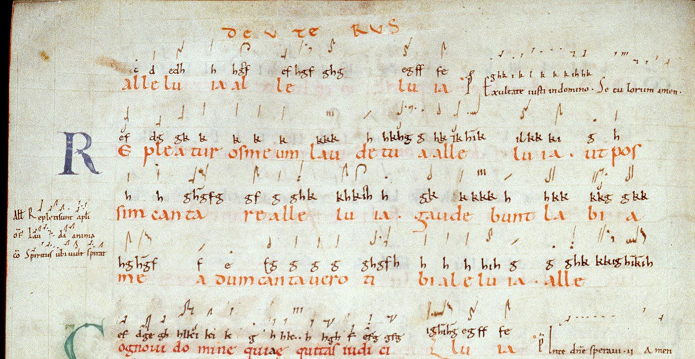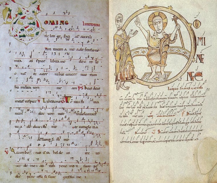 地域によるバリエーション – 方言 9世紀後半から10世紀初頭にかけて、西洋で広く普及していた多くの資料がほぼ一致していたが、その後、グレゴリオ聖歌は、その時代ごとに主流の趣味に合 わせて繰り返し改変された。1000年頃から、写本には旋律の変化が見られ、それが多かれ少なかれ顕著な地域方言の発展につながった。 8世紀以降、フランク地域では、典礼用ラテン語と、形成されつつあったロマンス語の方言との間で、二言語併用がますます進行した。ラテン語は教育、法律、 宗教の言語として残ったものの、日常生活では方言に取って代わられ、学習する外国語となった。この分離は、典礼歌の実践に大きな影響を与えた。ラテン語の 発音は、それぞれの民衆語にますます影響されるようになり、アクセントの変化、音節の変化、音声の相違が生じた。その結果、地域ごとに歌唱方法に違いが生 じ、筆記者や歌手は、特別な音符の記法によってそれを修正したり、補ったりしようとした。カンブレー(11 世紀末)の Mus. ms. 40338 などの写本には、こうした努力の痕跡が見られる。そこでは、楽譜は「正しい」歌唱を示すためではなく、フランス語的な発音によるテキストの意味の歪みを避 けるために用いられていたんだ。[63] このもうひとつの例としては、古い文献で「ゲルマン語聖歌方言」と呼ばれているものが挙げられ、ロレーヌ(メス)やドイツ(トリーア、マインツ、ヒルデス ハイム、クロスターノイブルク)の多くの写本に見られる。これは、ミヒャエル・ヘルメスドルフが編集した『Graduale Trevirense』(1863年)や、ペーター・ワグナーが記述したライプツィヒのトーマス教会聖歌集に記録されており、1333年から今日まで、ラ インガウのキードリッヒにあるキードリッヒ聖歌隊の少年たちによって歌われていることが確認されている。[64] |