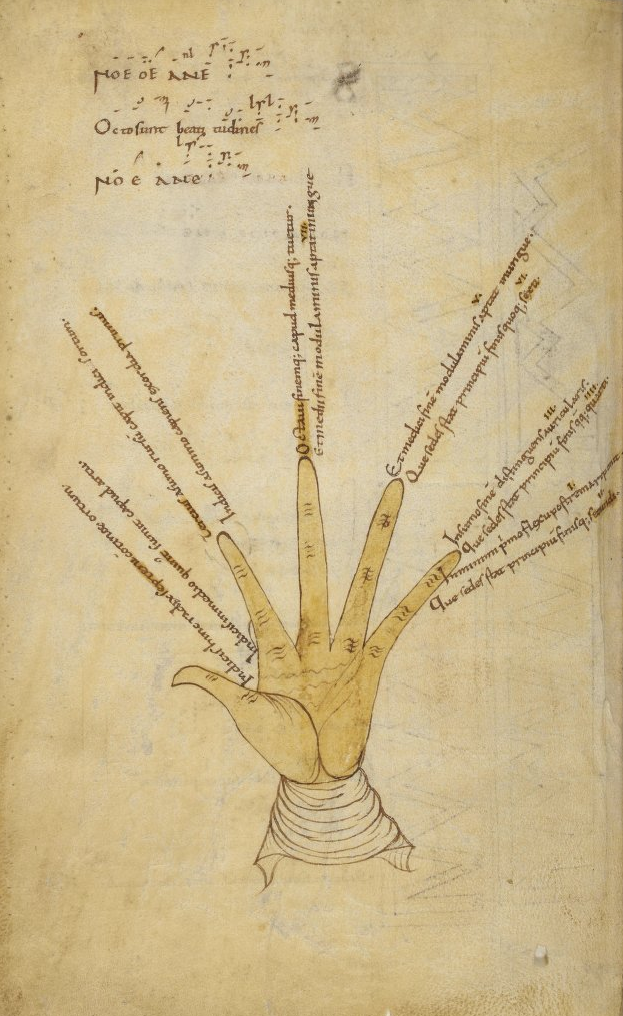 音楽的特徴 音階 グレゴリオ聖歌のメロディーは、基本的に中世にピタゴラスによって定義された七音階(ヘプタトニック)のダイアトニック音階に基づいている。この音階体系 に関する重要な記述は、1025年頃に書かれた音楽理論書『ミクロログス』に、グイド・ダ・アレッツォが弟子たちにモノコードの使用を勧めている。 ![]() モードを習得するための補助ツールとしての手、上にはノエノエの公式の名前 モード → 主な記事:教会調 振り返って簡単に言えば、モードとは 8 つの教会旋法(モード)の使用を意味する。しかし、最優先の秩序原理としては、ヘキサコード(ギリシャ語の「6」を意味する hexa)が考えられており、オクターブを完成させる 7 番目の音は、まだあまり重要視されていなかった。各オクターブで同じ文字を使って音名を使用することは、当時としては新しい試みだった。 さまざまなモードは、時代によって、音階や音階としてだけでなく、特定の旋律形式やリズム的側面も備えていた。フィナリス、コンフィナリス、レペルクッサ などの特定の音は、モードに応じて、さまざまな優先的な意味を持つ。一部のモードは、ビザンチン様式の特徴や影響も受けている。 中世以来、モードの精神についても繰り返し議論がなされてきた。その精神によれば、さまざまなモードは、その特徴的な性質から、特定の表現形式や教会暦の 特定の時代に頻繁に使用されることがある。 時代的な分類 グレゴリオ聖歌の調性体系における 8 つのモード(教会調)の使用について、現存する最古の証拠は、おそらく 800 年直前に作成された、セントゥラ/サン・リキエの「トナー」であり、その後、さらに他の証拠が続いた。[42] ここで使用されている中世初期のモードの用語は、同時期に作成されたカロリング朝の短い論文「Musica Albini」(「De octo tonis」としても伝承)にも記載されている。このテキストは中世に何度も複製され、850年頃にアウレリアヌス・レオメンシスによって書かれた音楽理 論の著述「Musica Disciplina」にも引用されている。 ![]() フランス語のネウマと a から p までの音符を用いたデウテロス(III モード)の表現 10 世紀から 12 世紀にかけて頻繁に行われた研究では、ボエティウスのモノコードの理論が、モード論、オクトエコス論[43] に適用され、それに応じて変更された。[44] その際、2種類の音符の体系が使用された。 a b c d e f g h i i k l m n o p Γ A B C D E F G a ♭ ♮ c d e f g a/a ![]() |