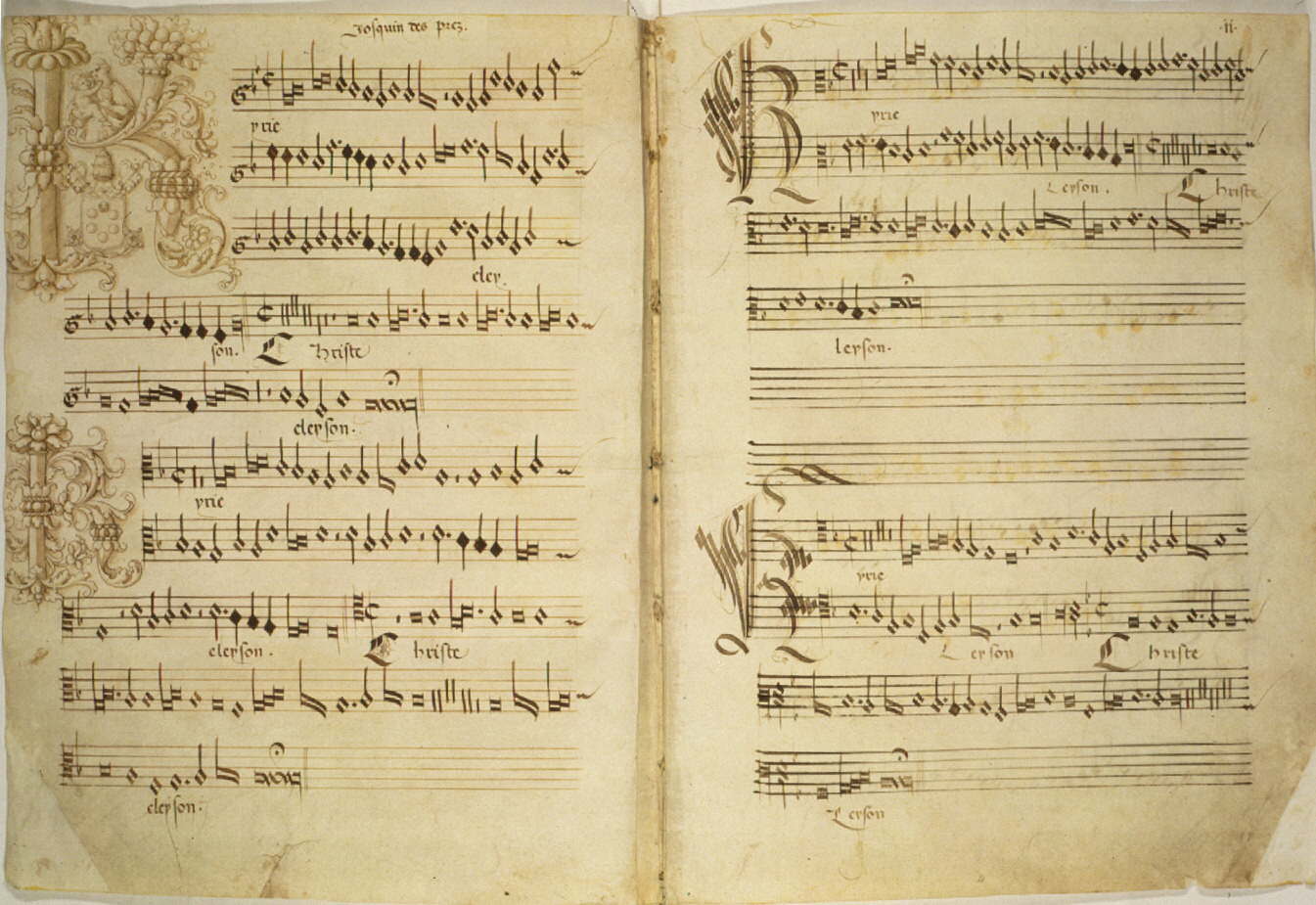 グレゴリオ聖歌と中世の多声音楽![]() ギヨーム・ド・マショーの「ノートルダムのミサ」における、等拍子のテノールとしてのグレゴリオ聖歌のキリエ 中世の多声音楽とグレゴリオ聖歌は、相互に密接な関係にあった。一方では、少なくとも 15 世紀までは、多声音楽の発展はグレゴリオ聖歌の旋律とその典礼上および神学上の意味に依存していた。他方では、多声音楽の普及により、単声の典礼歌謡への 関心とそれに関する知識はますます低下していった。 ![]() 教育目的のために記譜された、ムジカ・エンキリアディス(Musica enchiriadis)の連祷曲「レックス・チェリ(Rex celi)」のオルガヌム 修道院や大聖堂での礼拝における多声音楽に関する最古の記述は、グレゴリオ聖歌の旋律に即興で付け加えられた第二声に関するものだ。多声音楽が理論的にま とめられ、図式的に表現されたのは、900 年より前に『Musica enchiriadis』でオルガヌムという形で初めてだった[72][73][74]。 グレゴリオ聖歌のメロディーの一部をカントゥス・フィルムスとして用いた多声音楽は、サン・マルシャル学校とノートルダム学校において、より大きな重要性 を獲得した。宗教的な多声音楽で最初に名声を博した作曲家は、レオニン(「最優秀のオルガニスト」)とペロタン(「最優秀のディスカント」)であった。彼 らは 12 世紀後半から 13 世紀初頭にかけて、パリのノートルダム大聖堂で活動した。[75] ノートルダム派の時代以降の音楽は、1320 年頃から蔑称としてアルス・アンティカと呼ばれ、それに対して、彼ら自身の作曲技法はアルス・ノヴァと呼ばれた。ギヨーム・ド・マショーなどのアルス・ノ ヴァの作曲家たちは、グレゴリオ聖歌を利用し、例えばグレゴリオ聖歌のメロディーの一部をカンタス・フィルムスとして等拍子の部分に分解し、それによって 作曲の骨格を作ったが、その過程でグレゴリオ聖歌の本来の精神的な特徴から完全に離れてしまった。[75] 多声部の作曲技法の斬新さは、長い間、教会の抵抗に直面した。教皇ヨハネス22世は、1325年の教皇勅書でこの新しい様式を批判し、教会による罰則を脅 しとして、単声部の聖歌の復活を要求した。教皇によれば、神学的な理由から、時折許可される多声の教会音楽では、グレゴリオ聖歌の旋律が作曲の基調となる べきだとしていた。しかし、このような制限も、教会音楽における多声音楽の勝利の行進を、長期的には止めることはできなかった。[76][77] ![]() ジョスカン・デ・プレ:ミサ・デ・ベアタ・ヴィルギネ。ベアタ・マリア・ヴィルギネの祝祭のためのグレゴリオ聖歌のキリエは、4つの声部すべてで模倣さ れ、言い換えられている。 グレゴリオ聖歌の旋律や旋律の一部を基にしたカントゥス・フィルム技法は、15 世紀に最盛期を迎えた。しかし、カントゥス・フィルムとして、グレゴリオ聖歌以外の旋律もますます多用されるようになった。これにより、多声音楽がグレゴ リオ聖歌に依存する度合いは低くなった。一方、グレゴリオ聖歌の旋律は、通奏技法によって全声部のモチーフを捉えることができた。16世紀前半のジョスカ ン・デ・プレの晩年の作品「ミサ・ダ・ベアータ・ヴィルジーネ」のキリエがそれだ。しかし、16世紀の終わり頃には、グレゴリオ聖歌の旋律は作曲素材とし ての重要性を失った。それ以降、グレゴリオ聖歌のモチーフや旋律が時折引用されたり、加工されたりすることは、ほとんど典礼的な意味合いを持たず、むしろ 古風な象徴としての価値を持つようになった。 9世紀から15世紀にかけて、グレゴリオ聖歌が楽譜に記され、多声音楽で使用されたことは、グレゴリオ聖歌の演奏方法や典礼的な意味合いに悪影響を及ぼし た。それは、生き生きと演奏される神の言葉から、徐々に、高音域を強調するゴシック様式の大聖堂での演奏によって多声音楽の発展を促進した、均質な演奏の カンタス・プラヌスへと変化していった。ゴデハルト・ヨッピヒは次のように書いている。[78] 「聖書への信頼は、記憶の軽視につながった。長い時代にわたって口頭で伝承されてきた旋律を書き留める必要性が、驚くべきことに、ヨーロッパ全域でほぼ同 時に、さまざまな楽譜の形成を促した。それは、数多くの旋律とその演奏のニュアンスを、もはや記憶に誤りなく留めておくことができないという懸念から引き 起こされたものと思われる。」 |