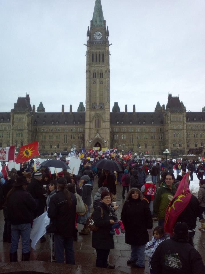 ☆2011年5月2日のカナダ連邦選挙後、スティーブン・ハーパー率いる保守党連邦政府は、包括的な変更を導入する複数の包括法案を提案した。過去の政権で も議会に包括法案が提出されたことはあったが、法案C-45で提案された森林と水路の保護措置の撤廃は、先住民族コミュニティと環境保護活動家の間で懸念 を引き起こした。特に懸念されたのは、第208条における「絶対的放棄」という用語の削除である。これらの措置の多くは、環境保護団体や先住民族団体から批判を浴びた。特に法案C-45は、1882年制定の「航行可能水域保護法(NWPA)」を全面改 正し、「航行保護法(NPA)」と改称した。NWPAは、原則としてあらゆる浮遊船による航行が可能な水域内または周辺での建設工事に際し、広範な承認・ 協議プロセスを義務付けていた。新NPAでは、運輸大臣が定める大幅に限定された水路リストのいずれか周辺での開発にのみ承認プロセスが要求される [4]。新たに規制緩和された水路の多くは、先住民の伝統的土地を通過していた。[5]先住民に影響を与える多くの法案は成立しなかった。過去の連邦政府にとって優先度が低かったため、数多くの法案提出試みは失敗に終わり、結局審議も可決も されずに議事日程から消えた。1996年には「インディアン法任意改正法」である法案C-79が議事日程から消えた。2002年には、保留地管理の改革を 図る「先住民統治法」法案(Bill C-7)が提出されたが、2003年に廃案となった。2008年には、女性に対する不平等な扱いを是正するための「保留地内の家族住宅および婚姻上の権利 に関する法律」法案(Bill C-47)が提出された。この法案は3回も議事日程で廃案となったが、2013年にようやく可決された。[8] ケロウナ合意はマーティン政権によって合意されたが、その後のハーパー政権によって承認も実施もされなかった。こうした失敗は、先住民と政府の関係に悪影 響を与えた。この背景には、連邦政府が先住民の利益に対して繰り返し不誠実な行動を取り、都合の良いときに条約に違反してきたという感情がある。連邦政府 との交渉という従来の戦術は意味をなさなくなったという感覚が、新しい戦術への支持を生み出している。