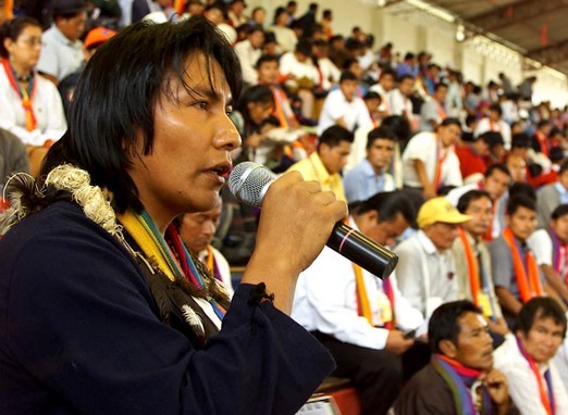 1997年の蜂起と憲法制定議会 1997年8月、CONAIEは憲法改正を要求する抗議行動を2日連続で主導した。CONAIEの指導部はアブダリ・ブカラム大統領の失脚と憲法制定議会 の招集に関与した。[2][1] その結果生まれた1998年憲法は、エクアドルを多民族・多文化国家と定義した。新憲法では先住民族グループに対し、「精神的・文化的・言語的・社会的・ 政治的・経済的アイデンティティと伝統を維持・発展・強化する権利」を含む多くの新たな権利が明示的に認められた。憲法により国家は環境保全、汚染除去、 持続可能な管理に関して多くの新たな責任と遵守すべき基準を課された。また先住民族の土地における開発プロジェクトには自由で事前かつ十分な情報に基づく 同意の権利が盛り込まれた。最後に、この文書は先住民地域における自己決定権の保護、伝統的政治構造の維持を規定し、先住民権利に関する国際的に認められ た法原則を定めた国際労働機関(ILO)第169号条約に準拠している。これら全ての点は長年求められてきたものであり、ついにこの国で最も重要な文書の 改訂によって保障されたのである。 CONAIEとパチャクティクのこの取り組みにおける勝利にもかかわらず、政府による政策の実施は新憲法の骨子と必ずしも一致しておらず、先住民族組織は 1998年以降苦闘を続けている。アマゾン地域における石油資源開発をめぐるARCOとの契約のような事例では、政府はこれらの新たな先住民族の権利を完 全に無視し、共同所有地を開発のために何の躊躇もなく売却した。こうした権利侵害は日常茶飯事となり、憲法改正は多くの点で、政府が先住民グループをなだ めつつ新自由主義政策を執拗に推進するためのポピュリスト的戦術に過ぎなかったように見える。このため先住民運動内部では、パチャクティクとコナイエの 間、そしてコナイエ内部においても、緊張と異なる意見が増大している。これまでに達成された成果にもかかわらず、政府の攻撃を止められないことに、現地の 部族やコナイエの取り組みに対する不満さえ存在している。  |