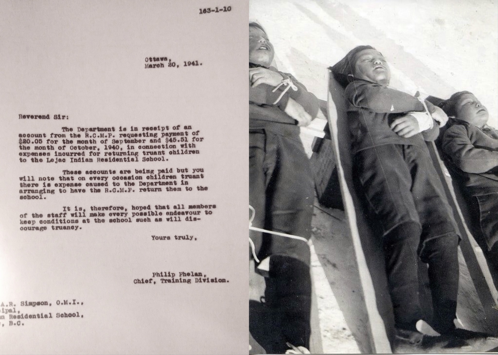 カナダ王立騎馬警察は、カナダ政府および教会と共謀し、悪名高いレジャック学校から必死に逃げ出した先住民の子供たちを連れ戻した。これはカナダ先住民問題省のアーカイブ文書に記録された、虐殺的な残虐行為として明らかになった事実である。 「オタワ、1941年3月20日。 牧師殿:当省はカナダ王立騎馬警察(RCMP)より、1940年9月分20ドル5セント、10月分45ドル51セントの支払いを求める請求書を受領した。これはレジャック・インディアン寄宿学校へ無断離脱児童を連れ戻す際に発生した経費に関するものである。 これらの請求は支払われるが、児童が不登校となる度に、RCMPに学校へ連れ戻させる手配で当省に費用が発生していることに留意されたい。 よって、教職員全員が不登校を防止するような学校環境維持に最大限の努力を払うことを望む。 敬具 フィリップ・フェラン訓練部長」 決して忘れるな…生存者たちは自らの物語を語ってほしいと願っている。 1937年、元旦の午前4時半から5時の間に、5人の郷愁に駆られた先住民の少年たちが、ブリティッシュコロンビア州ステラテン・ファースト・ネイション 領内にある悪名高いレジャック・インディアン寄宿学校から脱走した。ラジャック・インディアン寄宿学校には、キャリヤー族や近隣のセカニ族、ギトクサン族 の子供たちが多数在籍していた。故郷を渇望する子供たちは、休暇中の帰郷を事前に申請していたが却下されていた。暗闇の中、気温は零下20度。最年少の7 歳から最年長の10歳までの少年たちは「帽子も被らず、薄着のまま」学校を抜け出し、ナドレー保留地にある故郷へ向かって歩き出した。午後6時、夕食に現 れないことに学校は少年たちの不在に気づいた。必死の旅路を1マイル進んだところで、5人組のうち10歳のポール・アレックスが学校へ引き返した。残る4 人の少年たちは目的地まであと1マイルの地点で凍死した。 1937年3月25日、ブリティッシュコロンビア州インディアン委員が作成したカナダ先住民省の機密報告書は次のように結論づけている。「…子供たちは、 ボーモント・ビーチから約400メートル離れた湖上の地点に、大変な苦労の末に到達した。この地点の雪は狭い範囲で踏み固められ、所々で子供たちが雪をか き分けていた。これは彼らが疲労の極限に達し、これ以上進めず休息を求めていたことを示している。ここで彼らは倒れ、死亡した。凍死した遺体は1月2日午 後5時30分、インディアン・チャーリーによって発見された。 子供たちが移動した総距離は約 8 マイルで、遺体が発見された地点に到達するのにかかった時間は 7 時間と推定される。このことから、子供たちは 1 月 1 日の深夜、あるいはそれ以降、学校を出発してから 7 時間から 8 時間の間に死亡したと結論づけられる。 彼らは、アンドルー・ポール(8 歳)、ジョン・ミシェル・ジャック(7 歳)、モーリス・ジャスティス(8 歳)、アラン・ウィリー(9 歳)であった。 後にメディアで発表された声明の中で、レジャック・インディアン寄宿学校は、少年たちの死の責任を彼ら自身と、悲嘆に暮れる生徒たちのコミュニティに負わせた。 レジャック寄宿学校は、カナダの寄宿学校制度の一部であり、1874年から1996年にかけてカナダ全土で運営されていた先住民児童のための130の寄宿 学校のうちの1つであった。カナダ政府との契約に基づき、ローマカトリック教会によって運営されていた。他のほとんどの寄宿学校と同様、レイジャックの生 徒たちも身体的・性的虐待を受けていた。現在、敷地に残っているのは墓地と記念碑だけで、学校は1976年に閉鎖され校舎は取り壊された。 数千人の先住民の子どもたちが寄宿学校で命を落とした。学校は火災から彼らを守れず、虐待者から保護できず、致死性の感染症から健康を保てなかった。ま た、子どもたちが逃げ出さないよう寮に閉じ込めることも周知の事実だった。外部監査で繰り返し警告された避難階段やスプリンクラーの設置は常習的に無視さ れ、多くの命が火災で消えた。 寄宿学校の悲劇は、2015年に発表された真実和解委員会の調査結果と報告書によって突然明るみに出たわけではない。1909年、インディアン事務局の医 療総監ピーター・ブライス博士は政府に対し、1894年から1908年にかけて就学年齢の先住民児童の死亡率が30~60%に達していると警告していた。 当時の政府はほとんど注意を払わなかった。 1986年、カナダ合同教会は、同教会が関与した学校において「身体的、性的、精神的虐待を受けた生徒たち」に対して特に謝罪を発表した。 突然、キリスト教指導者たちは謝罪した。しかし、絶対的な権威を持つ教皇から長老派の説教者に至るまで、キリスト教の愛をこれほど熱心に信奉する宗教指導 者たちが、何万人もの先住民児童の命に関わる現実において、なぜこれほどまでに普遍的に誤った対応を取ったのか、誰も説明しなかった。 ~「私のコミュニティの多くの人々が、兄や姉たちも含めて、あの学校(レジャック)