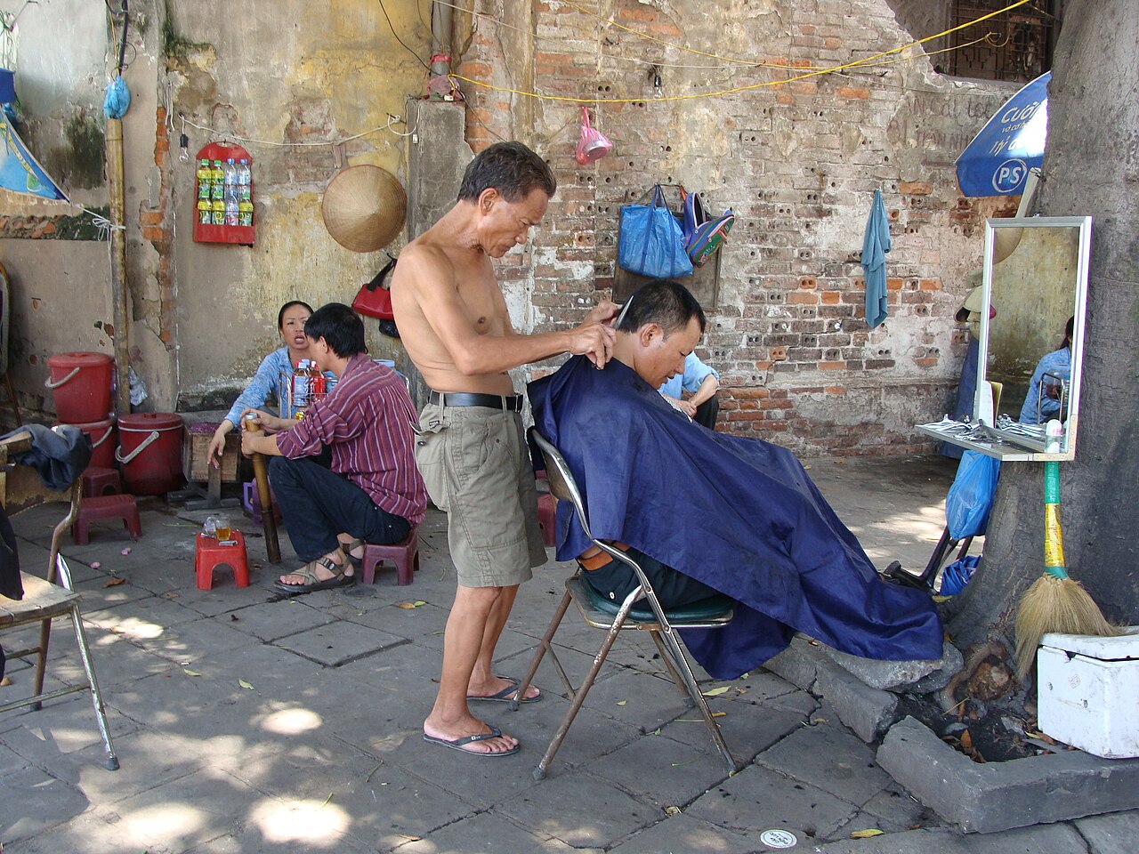 る[6]。インフォーマル経済を公式部門に統合することは重要な政策課題である[4]。 多くの場合、公式経済とは異なり、インフォーマル経済の活動は国の国民総生産(GNP)や国内総生産(GDP)に含まれない。[4] ただしイタリアは1987年以降、GDP計算に非公式活動の推計値を含めており、これによりGDPは推定18%増加している[7]。また2014年には、 国際会計基準に沿って売春や麻薬販売を公式GDP統計に含めるよう、複数の欧州諸国がGDP計算方法を正式に変更し、3~7%の増加をもたらした。[8] 非公式部門は労働のグレー市場と表現できる。非公式部門に分類される概念には闇市場(影の経済、地下経済)、アゴリズム、システムDなどがある。関連する 慣用句には「裏金」「帳簿外」「現金仕事」などがある。 ![]() ベトナムの側道での床屋 |