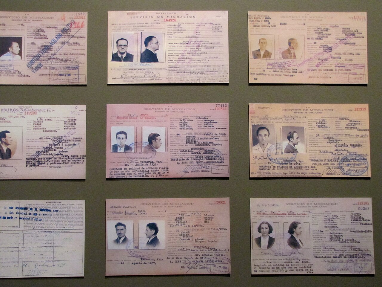 Exilio español![]() Identificaciones de españoles refugiados residentes en la Ciudad de México. Cárdenas acogió a unos cuarenta mil exiliados republicanos españoles, que debieron salir de su país por la guerra civil entre 1936 y 1939. En 1937, por intercesión de su esposa Amalia Solórzano, quien presidía el Comité de Ayuda a los Niños del Pueblo Español, asiló a 456 menores, huérfanos de la guerra civil e hijos de combatientes republicanos que fueron llevados a México, a petición del Comité Iberoamericano de Ayuda al Pueblo Español, y recibieron alojamiento, sustento y educación en la ciudad de Morelia. Con el pasar de los años, el grupo fue conocido como “los Niños de Morelia”. Su apoyo a la República Española no se limitó a esto, la defendió en foros internacionales e intentó ayudarla económicamente, incluso con exportación de armas; el gobierno de Roosevelt se opuso a estos planes. Al finalizar la guerra con el triunfo del ejército sublevado, Cárdenas puso bajo su protección a los exiliados españoles en Francia, incluyendo al presidente Manuel Azaña, quien murió bajo protección diplomática mexicana y fue enterrado envuelto en una bandera mexicana, porque las autoridades colaboracionistas francesas se negaron a que fuera enterrado con la bandera española republicana. Cárdenas, Rafael M. Pedrajo y los diplomáticos del régimen lograron que decenas de miles de exiliados fueran acogidos en México, incluidos numerosos intelectuales que enriquecieron sensiblemente la cultura mexicana.  |