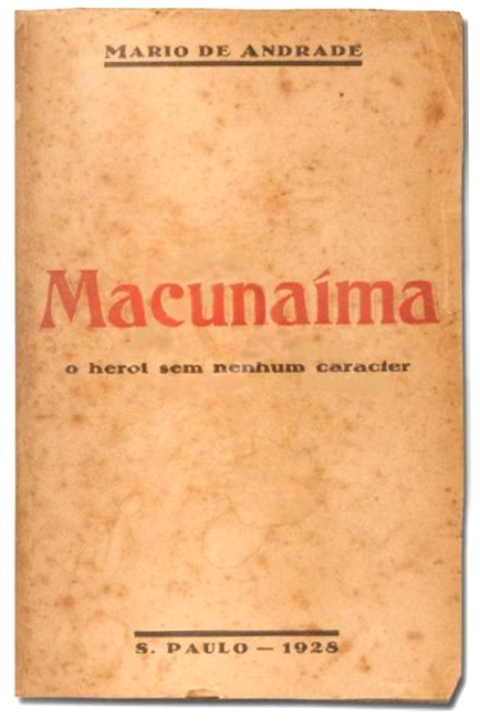 マクナイマ メイン記事: マクーナイマ (小説) ![]() Capa da primeira edição de Macunaíma 同時に、アンドラーデ(アンドラージ)はブラジル広域の方言や文化に精通していった。彼は詩集『幻覚の都市』で培った言語パターン技法を散文小説に応用し 始めた。この時期にこの技法を用いた二つの小説を執筆した。最初の『愛、自動詞』は主に形式的な実験作であった。[26] その後間もなく執筆され1928年に出版された第二作は『マクナイマ』であり、これはサンパウロにやって来てその言語(小説によれば二言語、すなわち ポルトガル語とブラジル語——を習得し、帰還する。[27] この小説の文体は複合的で、ジャングルと都市の鮮やかな描写が、後に呪術的リアリズムと呼ばれることになる幻想への急転と混ざり合っている。 言語的にも、この小説は複合的である。田舎の主人公が都会という環境と接触するにつれて、小説は言語の出会いをも反映している。[28] アンドラーデがヨーロッパのモダニストたちから学んだプリミティヴィズムに大きく依存し、この小説は、マクーナイマが都会生活に没入していく様子を探求し ながらも、先住民による人食いの可能性について長く立ち止まっている。批評家キンバーレ・S・ロペスは、食人行為こそが小説の主題を駆動する力であると論 じている。すなわち、ある文化が別の文化を「食う」という行為である。[29] 形式的には、マクーナイマは、アンドラーデが研究で収集した方言や都市と農村のリズムが恍惚と融合した作品である。そこには全く新しい散文様式が存在する ——深く音楽的で、率直に詩的であり、神々や神に近い存在に満ちながらも、かなりの物語的推進力を備えている。 同時に、小説全体は悲観的である。マクーナイマが自らの村を故意に破壊する場面で幕を閉じる。衝突の陶酔感にもかかわらず、小説が描く文化の邂逅は必然的 に破滅的である。 セヴェリーノ・ジョアン・アルブケルケが指摘したように、この小説は「構築と破壊」を不可分なものとして提示している。それは力(マクナイマはあらゆる奇 妙な力を持つ)と疎外の両方を描く小説である。[30] 『マクナイマ』が瞬時にブラジル文学の本質を変えた一方で——アルブケルケはこれを「ブラジル・モダニズムの礎となる作品」と呼ぶ——小説内の葛藤こそが その影響力の核心であった。 モダニズモは、アンドラーデが描いたように、形式的には近年のヨーロッパ文学の革新と結びつき、ブラジルの人口多様性における文化的力の生産的邂逅に基づ いていた。しかしそれは激しくナショナリストであり、その基盤の大部分は、ブラジルの文化を世界から区別することと、植民地支配の残存効果がもたらした損 害を記録することにあった。 同時に、その主人公の複雑な内面は、従来のブラジル文学ではほとんど探求されてこなかったテーマを示唆しており、批評家たちはこれをアンドラーデ自身への 言及と見なしている。マクーナイマは厳密な意味での自伝的作品ではないが、明らかにアンドラーデ自身の生涯を反映し、屈折させている。 アンドラーデはムラートであり、両親は地主であったが、ブラジルのポルトガル系の擬似貴族階級には決して属していなかった。批評家の中には、アンドラーデ の人種・家族的背景を、彼の創作したマクーナイマという人物のカテゴリー間の相互作用に重ね合わせる者もいる。[31] マクナイマの身体そのものが複合体である。彼の肌は部族の仲間たちよりも黒く、小説のある場面では、大人の身体に子供の頭を持つ姿で登場する。 彼自身は放浪者であり、決してどこにも属していない。 他の批評家たちは、アンドラーデのセクシュアリティとマクナイマの複雑な立場との間に、同様の類似性を主張している。[18] アンドラーデは公然と同性愛者ではなかったし、彼の性的慣行に関する直接的な証拠も存在しないが、彼の友人たちの多くは、彼の死後、彼が明らかに男性に興 味を持っていたと報告している(この話題はブラジルではしぶしぶしか議論されない)。[32] 1929年、アンドラーデはオズワルド・デ・アンドラーデとの決裂に至った。そのきっかけは、女々しさを非難する匿名の手紙であった。[18] マクナイマは女性を好むが、彼の絶え間ない「属しているようで属していない」状態は性に関連している。このキャラクターは性的早熟で、6歳で恋愛の冒険を 始め、彼の独特のエロティシズムは常に何らかの破壊へとつながるようだ。 必然的に、『マクーナイマ』の論争性と純粋な奇妙さは、ブラジル文化と教育の主流に定着するにつれ、その存在感が薄れていった。 かつては、学術的な批評家たちから、文学的価値よりも歴史的価値の方が大きい、構成のぎこちない作品と見なされていたこの小説は、その難解さがその美的特 徴の一部である、モダニズムの傑作として認識されるようになった。[33] アランデは、国民的文化の象徴であり、彼の顔はブラジルの通貨にも登場している。 1