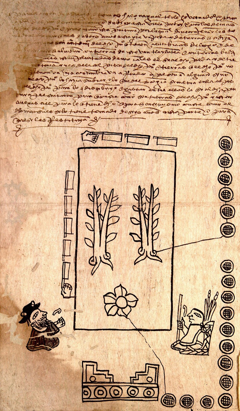 績を称えて、王室から彼に与えられた領地だ。これら3つの写本は、先住民の書記官(トラクイロ)が独自の文字体系を用いて、リュウゼツランの葉(マゲイ)