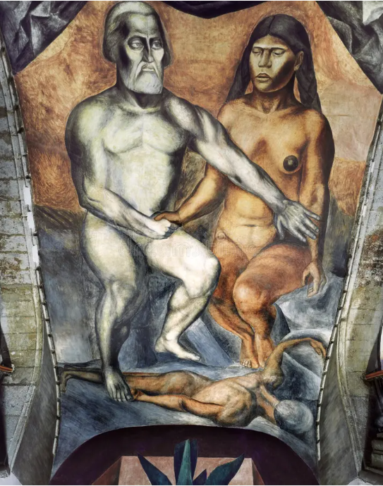 革命のテーマと思想 この壁画の中で最も支配的な作品は、リベラの2番目の妻、グアダルーペ・マリンを描いた『解放された大地』1926-27年フレスコ画である。 [29] この作品は、メキシコ革命がもたらすもの、すなわち、自然の力が人間の利益のために利用される自由で生産的な大地についてのリベラの見解を表す、最終的な 場所として置かれている。解放された大地』は、社会的なメキシコの架空の最終論として機能していると言えば、チャピンゴ礼拝堂の先行作品からも裏付けられ るだろう。これらの先行作品は、地球の進化と並行して農民運動の進化を示し、両方の出来事のタイムラインは、リベラ自身の肯定的な見解を色濃く反映してい る[12]。 メキシコ革命に対するオロスコの視点は、エスクエラ ナショナル プレパラトリアにある彼の壁画『The Trench』(1922-1924)、メキシコに見ることができる。ダイナミックな線と薄められた色調は、オロスコが革命に対する否定的な態度を例証す るために設定した悲惨なトーンを示している。他の多くの革命家たちとは対照的に、オロスコは兵士たちの顔を隠したままにしている。この匿名性は、戦争と革 命のために戦った兵士たちに対するコメントとして機能している。この革命のより暴力的で現実的な表現から、オロスコの狙いは、革命戦争が犠牲を払うに値す るものであったのかどうか、見る者に疑問を抱かせることにある[16]。これらの作品は大論争を巻き起こし、この壁画の汚損にまで至ったが、その後 1926年に塗り直された[30]。 シケイロスはメキシコ革命の思想にニュアンスをもたらした。彼は革命に対して根本的に否定的な意見を持っていたが、他の2人の画家が革命に対する経験や見 解に主眼を置いていたのに対し、彼は科学的な未来のイメージも描いていた。1939年、シケロスは他の革命芸術家グループと共同で、メキシコ・シティの電 気労働組合ビルに『ブルジョワーズの肖像』(1939年)というタイトルの壁画を制作した。これらの芸術家たちは共に、革命戦争の暴力は、ファシスト指導 者の支配を永続させる道具として使用された、資本主義として彼らが知っている欠陥のある経済システムの利用から生じているという信念を提示することを目指 した[16]。この芸術作品は、戦争の恐怖、革命中の資本主義の役割に対する芸術家たち自身の否定的な見解、そしてプロレタリアートであるメキシコ市民が いかにブルジョワーズによって見過ごされ、利用されていたかを示している。戦争の感情的な犠牲は、怯え、監視する母子ペアの反応によっても強調され、資本 主義に対する画家自身の反応をさらに反映している。悲観的なイメージのなかには、ゲリラ戦士の服装をした一人の男による希望の象徴もある。彼は、革命に立 ち会ったブルジョワーズの指導者たちに向けられたライフルを握っている。これは、壁画上部の電気塔の描写に見られるように、メキシコが革命で直面した障害 を克服し、テクノロジーを受け入れる有望な未来を象徴している[31]。 政治的表現 ビッグスリーは、政府の監視下で壁画を描いていた初期の数年間を経て、左翼的傾向を表現することに苦心した。革命後の政府とのこうした闘争は、壁画家たち に芸術家組合を作らせ、急進的なマニフェストを作成させた。アルバロ・オブレゴン大統領(1920-24)の下で公教育長官を務めていたホセ・バスコンセ ロスは、革命後の新政府の道徳的・財政的支援を受けて絵画を追求するよう、リベラ、シケイロス、オロスコと契約した[32]。バスコンセロスは、ナショナ リズムと「ラ・ラサ・コスミカ」を推進しようとしながらも、壁画家たちに古典的なヨーロッパ風の作品を制作するよう指導したため、この感情とは矛盾するよ うに思われた。ビッグスリーが古典的なプロポーションや人物像から逸脱したことで、壁画はバスコンセロスの批判の的となった。シケイロスは壁画と壁画家た ちの革命的関心との間の不調和に不満を抱き、将来の作品について芸術家たちの間で議論することを提唱した。 1922年、壁画家たちはメキシコ革命的技術労働者、画家、彫刻家組合を設立した。そして同組合は、彼らの将来の芸術活動の社会的目標として、教育、公益 的芸術、万人のための美を挙げたマニフェストを発表した[33]。 |