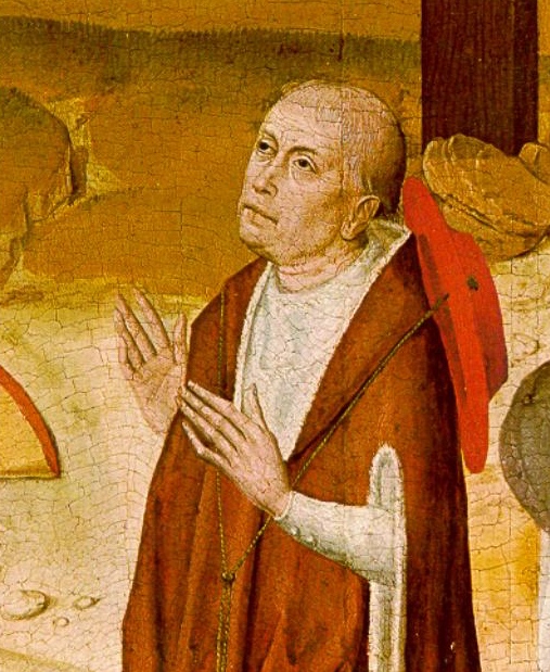 ![]() ニコラウス・フォン・クース。ベルンカステル・クースの聖ニコラウス病院礼拝堂の主祭壇にある、同時代の寄贈者の肖像画。 |