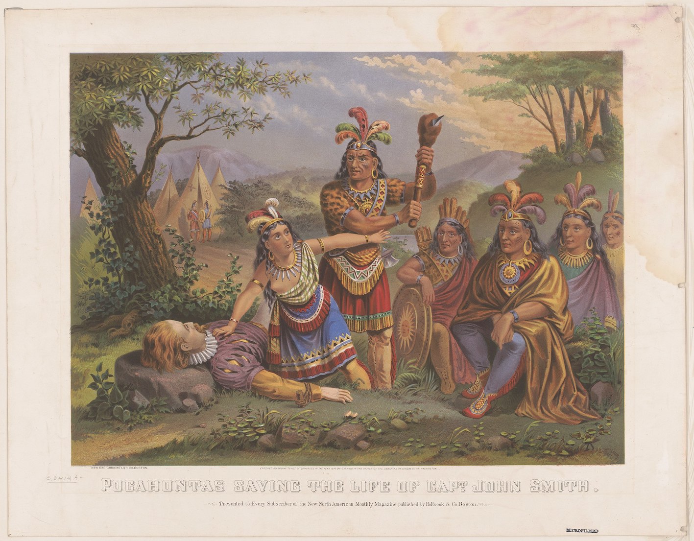文化的表現 19世紀の描写 彼女の死後、ポカホンタスについては、ますます空想的でロマンチックな表現が生まれ、彼女とスミスはしばしば恋愛関係にあると描かれるようになった。同時 代の資料は、彼らの友情は裏付けているが、恋愛関係については裏付けていない。[43] 彼らの恋愛関係について最初に主張したのは、ジョン・デイヴィスの『アメリカ合衆国旅行記』(1803年)である。[72] レイナ・グリーンは、ネイティブアメリカンとアジアの女性が経験する同様のフェティシズムについて論じている。どちらのグループも「エキゾチック」で「従 順」と見なされ、それが彼女たちの非人間化を助長している。[73] また、グリーンは、ネイティブアメリカンの女性が「エキゾチックな距離を保つか、死を選ぶか」を迫られたことに触れ、これは、ジョン・スミスのために自分 の命を犠牲にしようとしたポカホンタスの広く知られたイメージに関連している。[73] コーネル・ピューワーディはこう記している。「『ポカホンタス』において、ウィローおばあさん、ミーコ、フリットといったインディアンキャラクターは、 ディズニーの伝統的な『身近な動物』の範疇に属する。そうしたことで、彼らは漫画的な存在として描かれ、確かにポカホンタスやジョン・スミスよりも現実味 に欠ける。こうしてインディアンは境界的な存在であり続け、皮肉にも『自らの土地における異邦人』―影のインディアンとなる。彼らは銀幕上で自らの権利を 守るため必死に戦うが、白人ヒーローを殺そうとするか、インディアン女性を救おうとする過程で死ぬのである。」[74] |