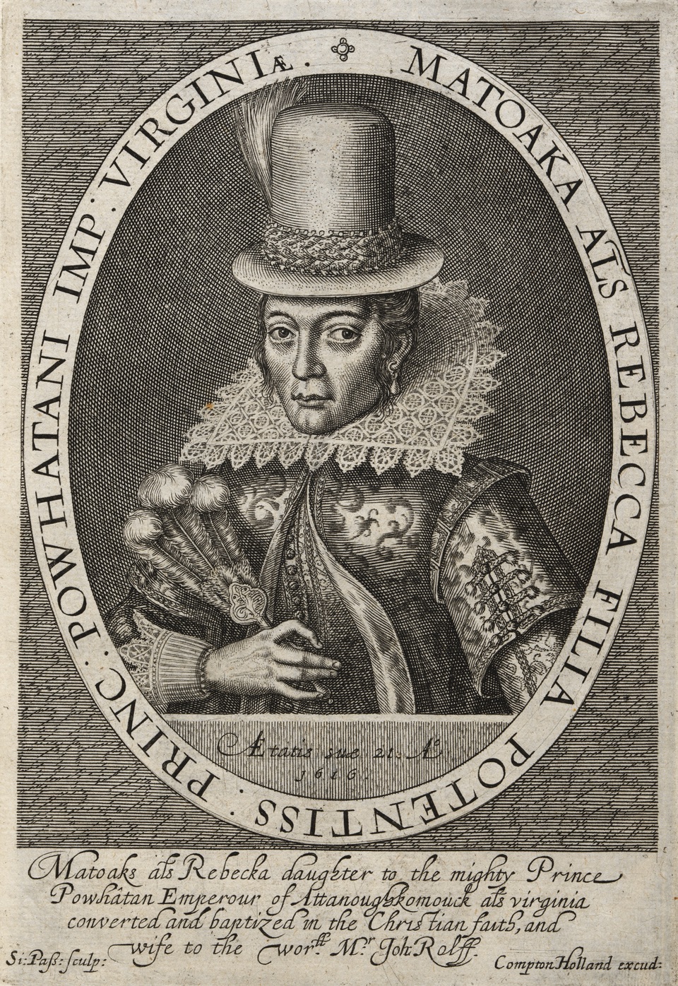 名で洗礼を受けた。1614年4月、17歳か18歳の時にタバコ栽培者ジョン・ロルフと結婚し、1615年1月に息子トマス・ロルフを出産した。