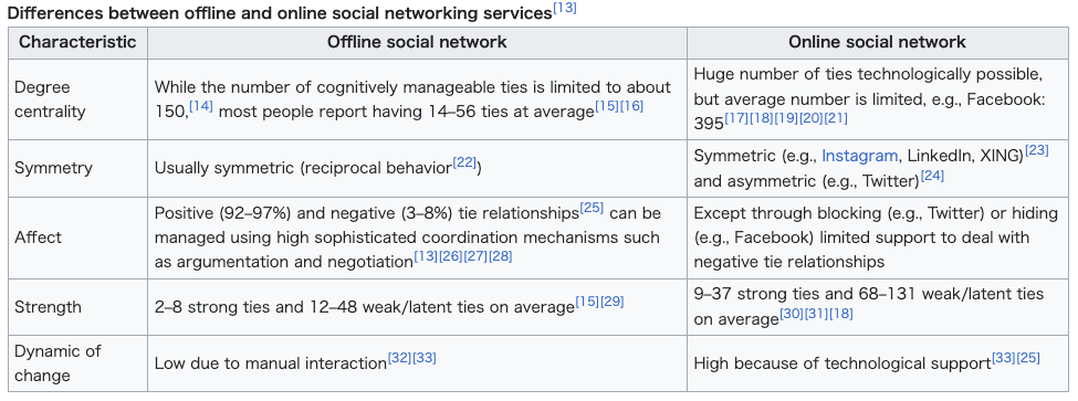 between offline and online social networking services
