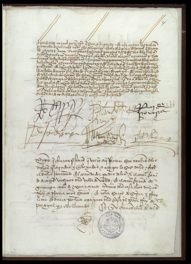 条約の内容![]() 条約の原本。リスボン国立図書館。 ![]() インディアス総記録保管所 条約の要点は、新たな境界線の合意であった。この境界線は、両極を起点とし、カーボベルデ諸島の西370リーグ[12]を通過するものであった。教皇勅書 で定められた境界線との大きな違いは、南アメリカの東部、ブラジル最東端がポルトガルの管轄区域に組み入れられたことで、1500年にペドロ・アルヴァレ ス・カブラルがブラジル沿岸に到着した際に、ポルトガルの主権下に置くことが可能になった。 ラモン・メネンデス・ピダルは、その著書『スペインの歴史』の中で、トルデシリャス条約をヨーロッパ史上初の近代的条約と評している。それは、交渉を担当 した外交官たちの傍らに、初めて2つの専門家グループ(スペイン人とポルトガル人)が立ち、外交官たちに技術的な助言を行ったからである。 この条約の目的は、次のように述べられている。... 両国間の構成員の間には、各当事者に属する海域について一定の相違があり、本条約締結日現在、その海域は未発見であることから... 境界は次のように定められた。 ... 前記の海洋、すなわち大西洋に、極から極へ、すなわち北極から南極へ、つまり北から南へ、一直線の境界線を引くこと。この境界線は、 前述の通り、カーボベルデ諸島から西へ370リーグの地点で、最も適切かつ迅速な方法で、角度またはその他の方法で設定されなければならない。そのように して、これ以上... 管轄権の割り当ては次の通りであった。 これまで発見され、発見されたもの、そして今後、ポルトガル王とその船団によって発見されるもの、すなわち、前述の境界線および線から、その境界線の東 側、あるいは北側、あるいは南側に向かって、 ただし、その境界線を越えない範囲において、これらは、ポルトガル王とその後継者たちに、永遠に属するものとする。また、その他、島々や陸地など、発見さ れたもの、これから発見されるもの、発見されたもの、これから発見されるものは、カスティーリャ王とアラゴン王、その他によって発見されたもの、またはこ れから発見されるものは、 その境界線を西側に向かって越えた後、その境界線の西側、北側、南側にあるものはすべて、カスティーリャ、レオンなどの国王と王妃、およびその後継者たち に永遠に属するものとする。 両当事者は、相手方の管轄区域に遠征隊を派遣しないことを約束し、これを怠った場合は引き渡し義務を負う。 ... 今後、いかなる船も派遣しない。すなわち、カスティーリャ、レオン、アラゴンなどの国王および女王は、この境界線の東側、すなわちポルトガルおよびアルガ ルヴェなどの国王が所有する境界線の東側へ、 また、ポルトガルの国王も、カスティリャ、レオン、アラゴンなどの国王と王妃が支配する、この境界線の東側にある地域へ、土地や島々を発見・探索したり、 契約や救出、征服などを行うために船を派遣してはならない... スペインの船は、アメリカ大陸へ航海するために、ポルトガル側の海域を自由に航行することが認められた。 ...カスティリャ、レオン、アラゴンなどの国王および女王の船は、ポルトガル国王が所有する境界線内の海域を、いつでも、また、両陛下およびその後継者 が望むとき、そしてそれが適切であると判断したときはいつでも、自由かつ安全かつ平和的に、何らの妨害も受けずに航行することができる。それらの船は、そ の王国から、その境界線および限界内のあらゆる場所へ、その正当な航路およびルートを航行するものとする... ただし、悪天候により逸脱せざるを得ない場合はこの限りではない... コロンブスの第二回航海が進行中であることを考慮し、カスティーリャとアラゴンの航海者たちが、1494年6月20日までに、カーボベルデから極から極ま で250から370リーグの範囲で、島や陸地を発見した場合、それはスペイン国王たちのものとなることも合意された。しかし、コロンブスは最初の2回の航 海で南アメリカに接近しなかったため、この規定は適用されなかった。 つまり、6月の20日まで、カスティーリャとアラゴンの国王とその民、あるいはその他の方法で、370リーグのうちの120リーグ以内で、 つまり、前述のように、極から極まで、前述の370リーグのうち、前述の120リーグの範囲内で、前述の極まで発見された島々は、前述の6月20日まで、 カスティーリャおよびアラゴンなどの国王および女王の所有物として残される。  |