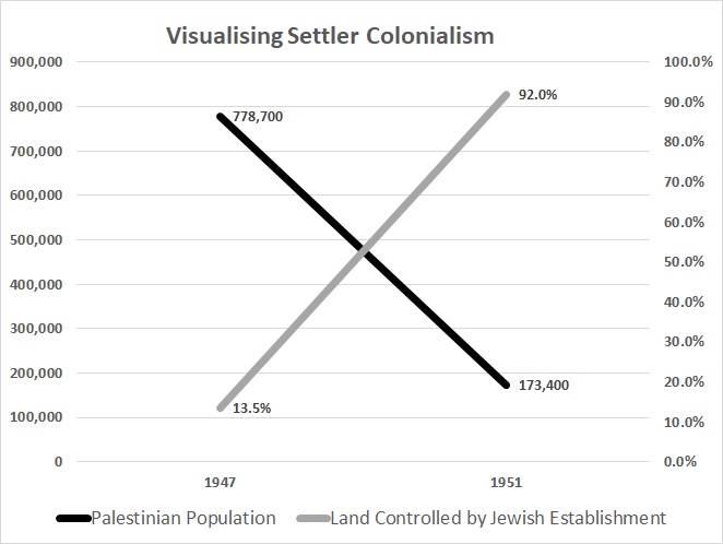 graph by Neve Gordon showing the population shift from 1947 to 1951 in
