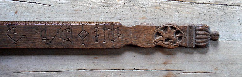 Characteristics of folk art objects![]() Detail of 17th century calendar stick carved with national coat of arms, a common motif in Norwegian folk art. Main article: Concepts in folk art Objects of folk art are a subset of material culture and include objects which are experienced through the senses, by seeing and touching. Typical for material culture in art, these tangible objects can be handled, repeatedly re-experienced, and sometimes broken. They are considered works of art because of the technical execution of an existing form and design; the skill might be seen in the precision of the form, the surface decoration or in the beauty of the finished product.[4] As a folk art, these objects share several characteristics that distinguish them from other artifacts of material culture. |