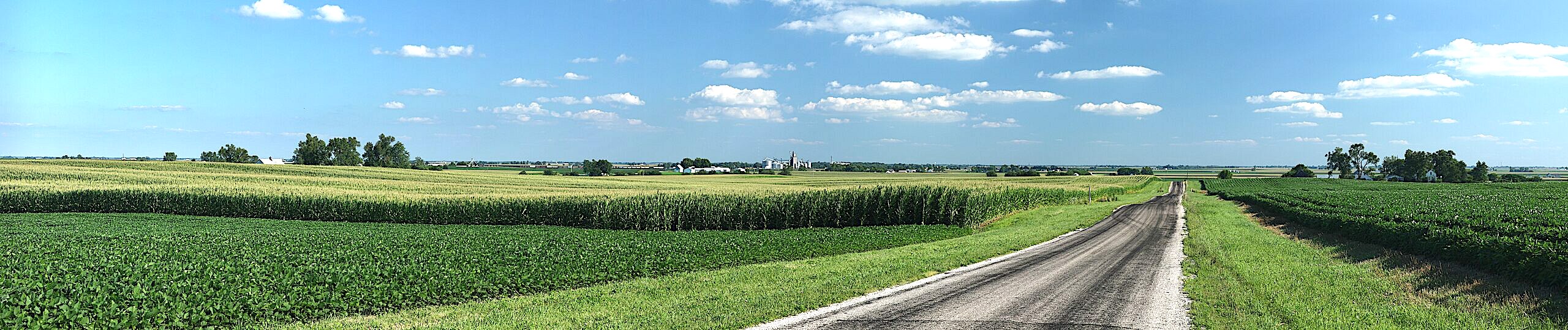 Campos de maíz de gran tamaño constituyen el cultivo desarrollado más extensivamente en la región estadounidense denominada, muy apropiadamente, Corn Belt la cual ha venido diversificándose recientemente para incluir otros cultivos, como otros cereales y leguminosas como la soya o soja.解説:池田光穂