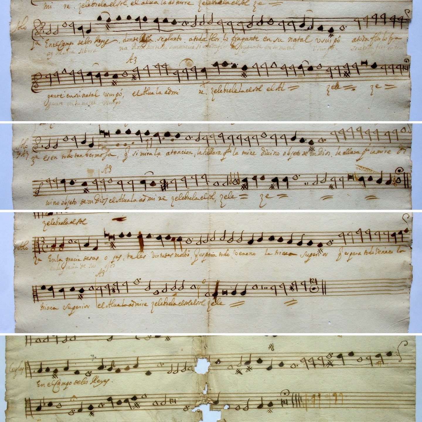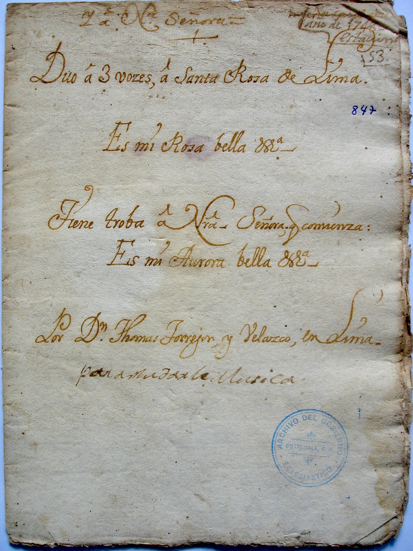ソル・フアナ・イネス・デ・ラ・クルス作とされるヴィリャンシーコについて... - 原題ページ:「Romance a 4, a la gloriosa Virgen Santa Teresa」。 グアテマラの大聖堂でマルコス・デ・ケベドが原題ページのデータの周辺に「Airecillos suaves」と「Para San Felipe」を書き加えた。 グアテマラ大聖堂の別の写し手により、「Este se cantó el año de 1694」(これは1694年に歌われた)と追加された。 その他、マルコス・デ・ケベド・イ・ナバスの手により、2つの時期に追加された: 「Asunción: De hermosas contradicciones, de la madre Juana Inés"(アスンシオン:フアナ・イネス夫人の美しい矛盾)。 「Para Pascua, Nace llorando un zagal, 1686 "である。 18世紀半ば、マヌエル・ホセ・デ・キロスにより、タイトルページの頭に 「Santa Teresa 」と追加された。 - この作品は、何十年もの間、ソル・フアナ・イネス・デ・ラ・クルスの作として流通してきた。 タイトルページだけを批判的に読み解き、コピー者のリスト-音楽に1人、詩に2人(オリジナルのタイトルページに注釈をつけた1人を含む)、そしてタイト ルページにデータを追加した少なくともあと3人の手-と、追加された6つの異なる時期を評価すれば、ソル・フアナの言及が17世紀の最後の5年間のある時 点でグアテマラでなされたことを示すのに十分であるが、メキシコの詩人修道女に関連する音楽も詩も保存されていない。しかし、1679年にメキシコのカテ ドラルの聖母被昇天のマチンのために彼女が書いたヴィリャンシーコ 「De hermosas contradicciones 」の詩が、グアテマラで、作者不明の聖テレサに捧げられた別の詩 「Madre la de los primores 」のために書かれた音楽に転用されたという事実については言及されている。このことは、ソル・フアナによる聖母被昇天のヴィリャンシーコと、聖テレジアの ヴィリャンシーコとの間に、文学的構造の不一致があること、また、修道女によって書かれたリフレインを完全に楽譜に合わせることが不可能であったことから も確認できる。 ※この情報は(https://x.gd/Wbnrs)に図像2葉とともに掲載している |