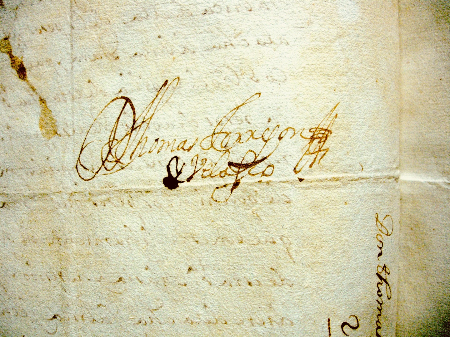 ![]() Carta de pago, detrás de la libranza: "Recibí del señor capitán Simón Frens la cantidad contenida en esta libranza de atrás. Y para que conste, di ésta en diez de julio de mil y seiscientos y cuarenta y cuatro años. Diego de Gálvez Prado [Rúbrica]". |