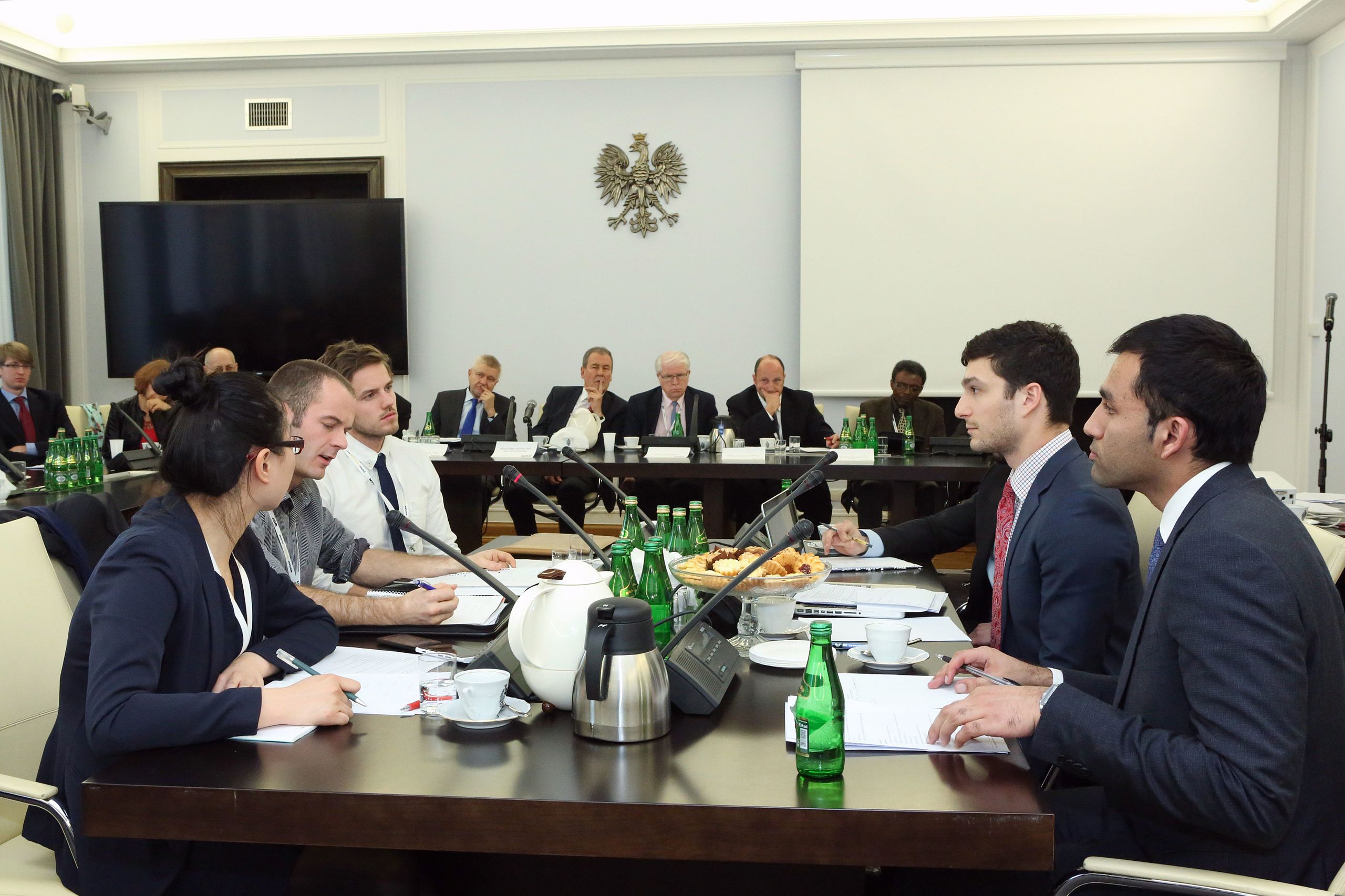 Left: J. K. Paasikivi, Finnish Counselor of State and the future President of Finland, arrived from negotiations in Moscow on October 16, 1939. From left to right: Aarno Yrjö-Koskinen, Paasikivi, Johan Nykopp and Aladár Paasonen.