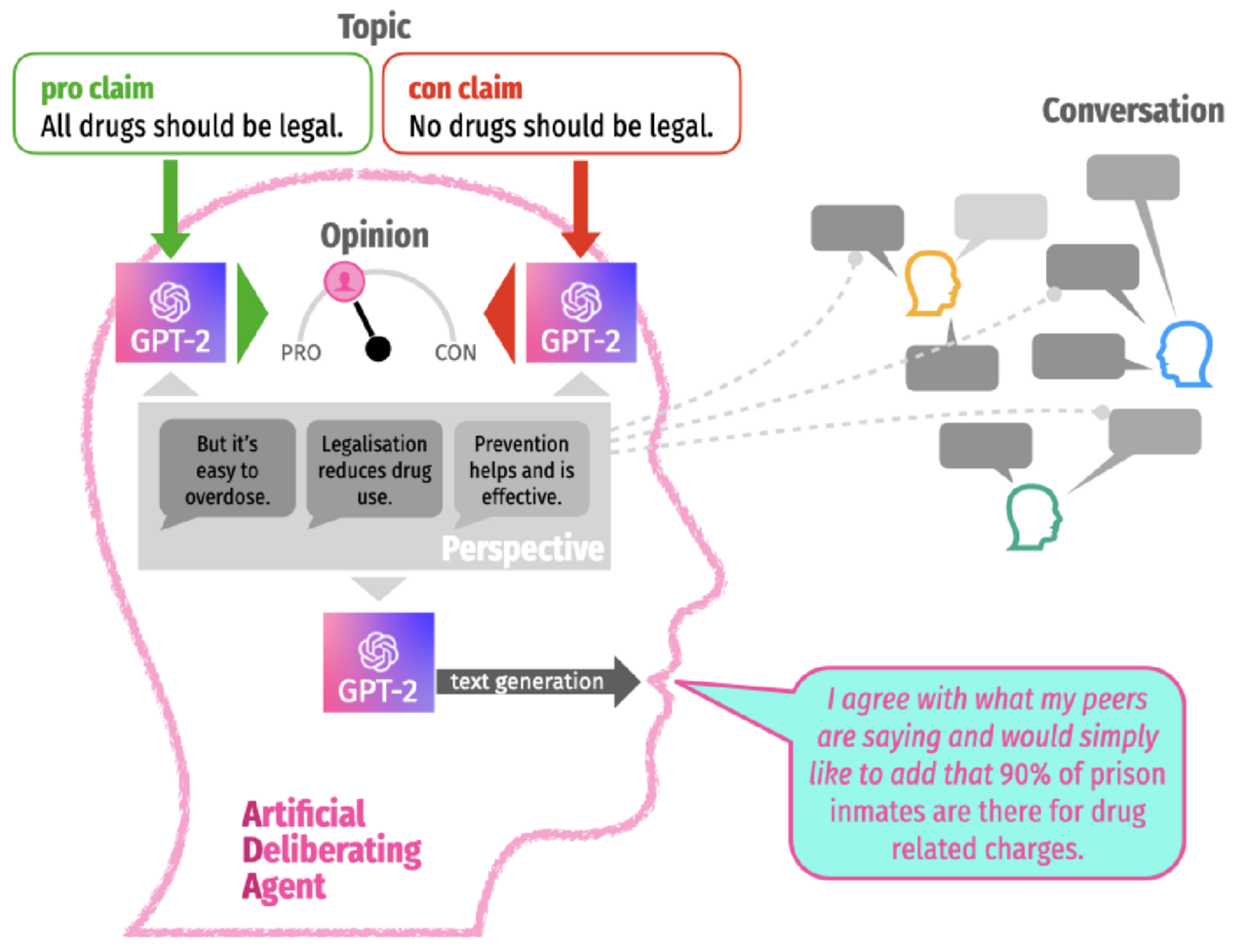 人工知能 関連項目:議論技術、議論マッピング、議論フレームワーク ![]() Kialoのようなプラットフォームによる構造化された議論は、「人工審議エージェント」(ADA)や計算推論に活用できる[31][32]。 ![]() ADAの例:クロールしたKialoデータから議論に不足情報を補完し、事前会話とクロールした議論の重み付け評価に基づいて選択する[32] 人工知能の分野では、コンピュータによる議論の実行と分析が行われてきた。議論は、Dung(1995)の影響力ある研究を起点として、非単調論理の証明 理論的意味論を提供する手段として用いられてきた。計算論的議論システムは、形式論理や古典的決定理論では捉えきれない豊かな推論が求められる分野、例え ば法学や医学において特に応用されている。『Elements of Argumentation』において、Philippe BesnardとAnthony Hunterは、古典論理に基づく手法を用いて実践的議論の重要な要素をいかに捉えられるかを示している。[33] コンピュータサイエンス分野では、ArgMASワークショップシリーズ(マルチエージェントシステムにおける論証)、CMNAワークショップシリーズ [34]、COMMAカンファレンス[35]が毎年開催され、世界中の参加者を集めている。学術誌『Argument & Computation』[36]は、論証とコンピュータサイエンスの交差点を探求することに特化している。ArgMiningは、関連する論証マイニン グタスクに特化したワークショップシリーズである。[37] 共同構造化オンライン論証プラットフォームKialoのデータは、自然言語処理AIシステムの訓練と評価に利用されている。最も一般的な例はBERTとそ の派生モデルである[48]。これには論証抽出、結論生成[40][追加引用が必要]、論証形式の質評価[49]、機械による論証的討論の生成または参加 [44]、 [46][47] これまで見落とされていた最も関連性の高い視点や議論の抽出[44][46]、議論的ライティング支援[42](文の攻撃可能性スコアを含む)[50]、 文の真実性や説得力の自動リアルタイム評価(ファクトチェックに類似)[50]、言語モデルの微調整[51][47](チャットボット向けを含む)、 [52][53] 議論の影響力予測、議論の分類と極性予測。[54][55] |