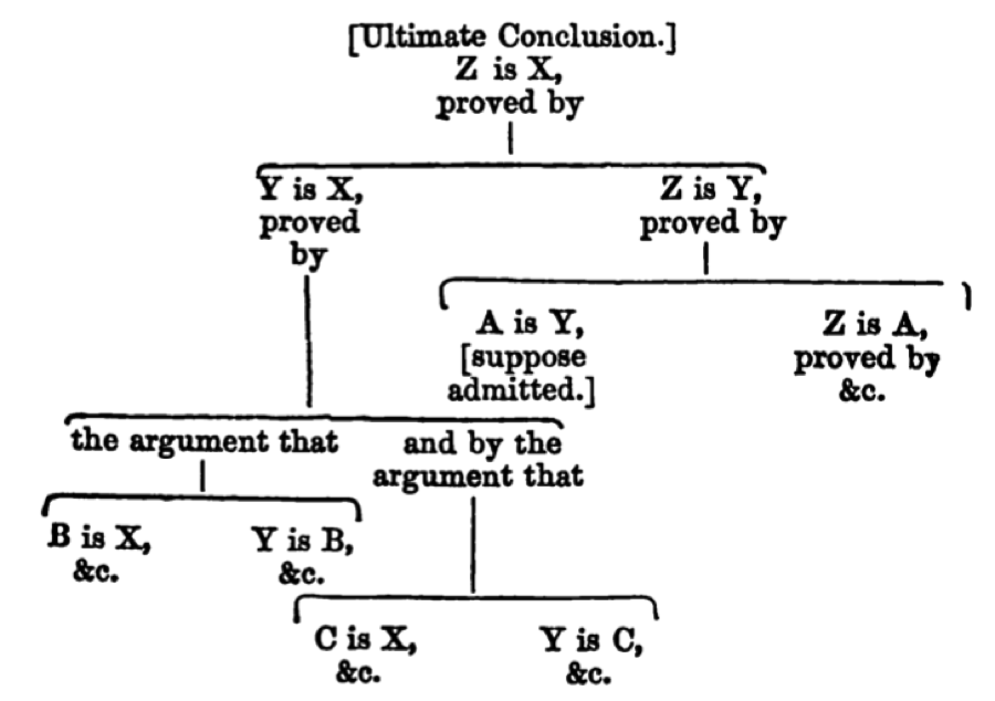 トゥルーミンが最初にこの論証の枠組みを提案した時、それは法廷におけ