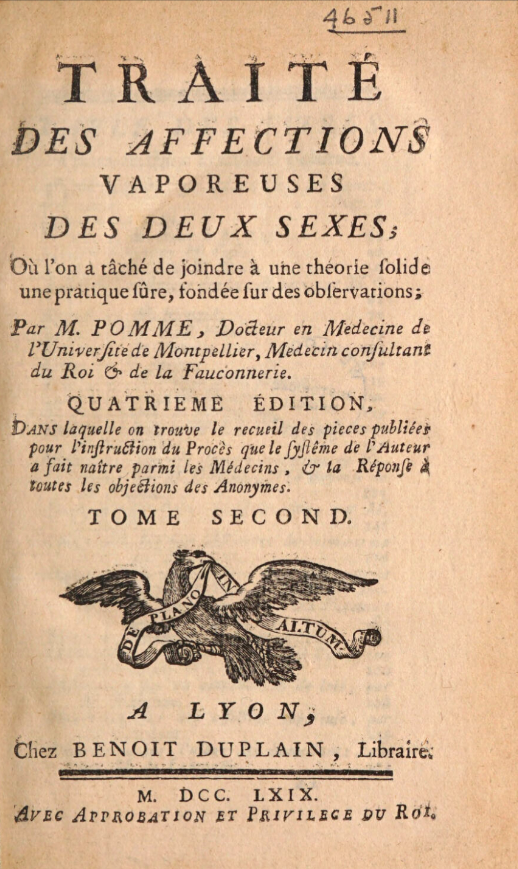 Traité des affections vaporeuses des deux sexes / [Pierre Pomme].1769 Welcome Collection./ Antoine Laurent Jessé Bayle, 1799-1858