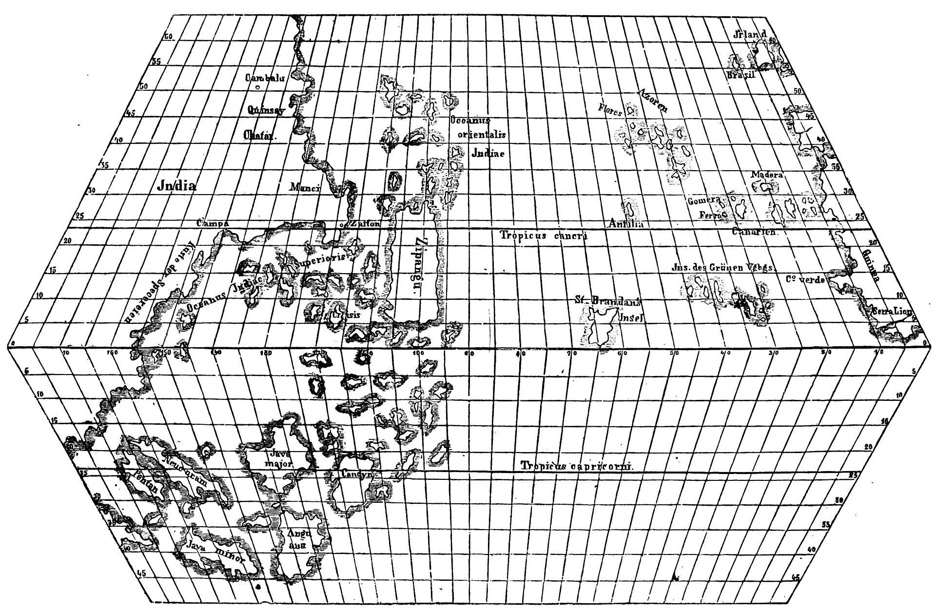 プロジェクト![]() トスカネッリに帰属される地図。 クリストファー・コロンブスが西へ航海してジパング(現代の日本)とモンゴルの大汗の領土に到達するという計画がいつ生まれたかを推定するのは難しいが、彼の結婚後、1481年以前と推定される。[63][134] おそらく彼は、この問題に関心を持っていたポルトガルのアルフォンソ5世の依頼を受けて、フィレンツェの数学者であり医師でもあったパオロ・ダル・ポッ ツォ・トスカネッリが、西からインディアスに到達する可能性について書いた報告書を知っていたのだろう。[137][138][139] いずれにせよ、コロンブスはトスカネッリの書簡と、アジア東部への航路、その途中に存在すると考えられていたすべての島々を記した地図を入手していた [140]。この地図とトスカネッリの報告は、主にマルコ・ポーロの旅行記に基づいていた。トスカネッリは、ヨーロッパの西端とアジアの間の距離はそれほ ど遠くなく、リスボンとクインサイ間の距離は約6500海里、伝説のアンティリアからジパングまではわずか2500マイルであり、航海は容易であると指摘 していた。[139] バルトロメ・デ・ラス・カサス神父は、彼の『インディアス史』の中で、トスカネッリがコロンブスに宛てたとされる 2 通の手紙を引用しているが、[137] その真偽については議論がある。[141][142] コロンブスの図書館に保存されている書籍は、彼の考えに影響を与えたものについて、その習慣から光を当てている。彼は書籍に下線を引く習慣があり、最も下 線が引かれている書籍は最もよく読まれた書籍であると推測される。最も多くの注釈が記されているのは、ピエール・ダリーの『世界像に関する論文』、エニア ス・シルヴィオ・ピッコロミニの『世界各国の事績』、そして特にマルコ・ポーロの『東方見聞録』であり、これらは彼が夢見ていた東洋の姿を思い描くきっか けとなった。 コロンブスは、ポシドニオスの「測定」とアリーの地球の度数測定に基づき、地球の円周は 29,000 km であると考えた。しかし、アリーの測定はイタリアのマイルではなくアラブのマイルによるものであり、 [16] それにより、彼は地球の円周を実際の4分の3以下と計算した。一方、エラトステネスの時代から科学的に認められていた円周は、実際の4分の3以上であっ た。その結果、コロンブスによれば、カナリア諸島とジパングの間は約2400海里[143]であるはずだが、実際には10700海里である。 |