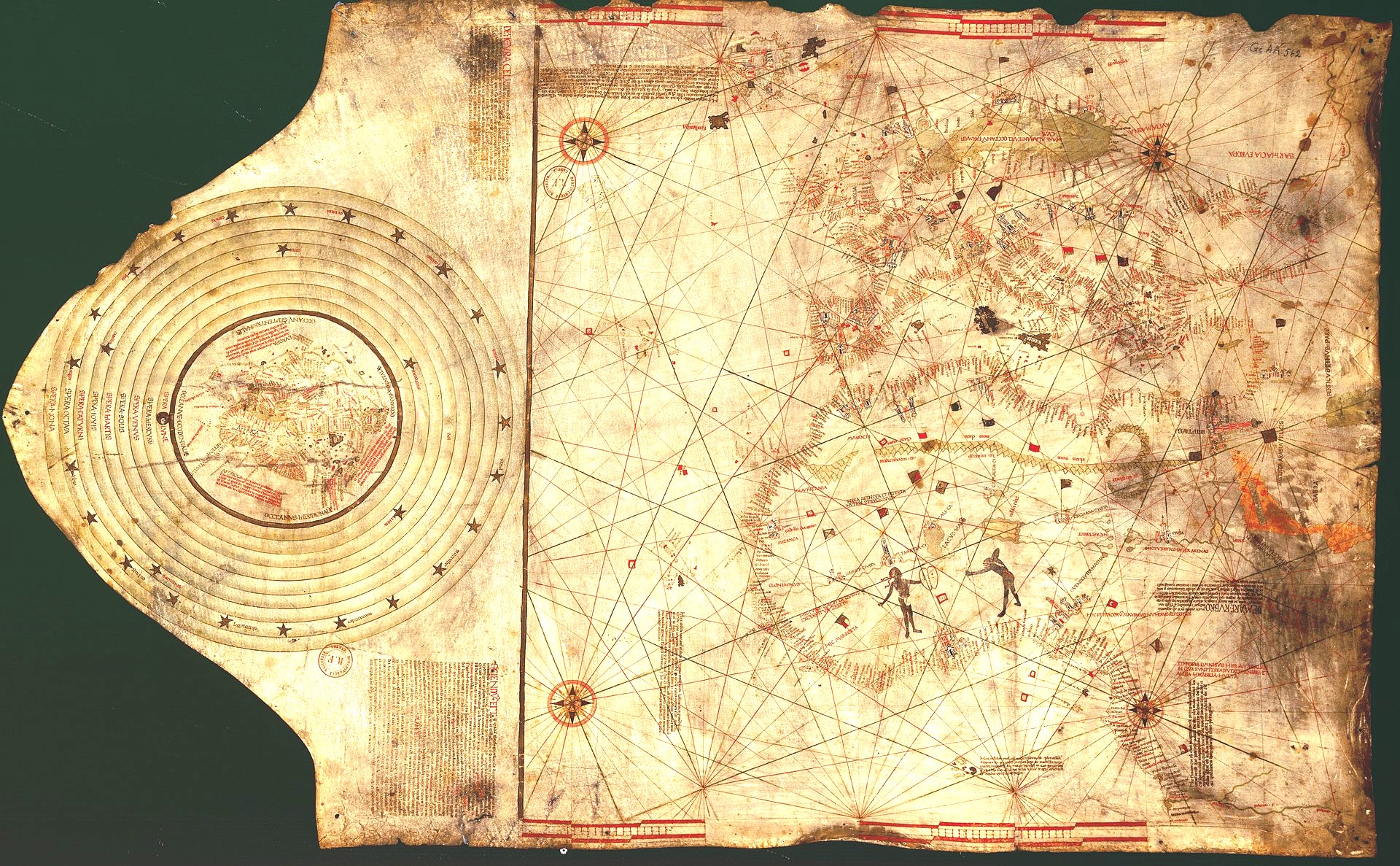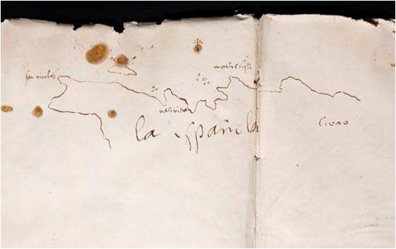 その他の側面 地図製作者 コロンブスが署名した地図は現存していないが、いくつかの証拠から、彼がいくつかの地図を描いたことが示唆されている。ラス・カサスや16世紀の他の著者 たちは、コロンブスが時折海図を作成して生計を立てていたと主張している。ラス・カサスはまた、1492年にキューバ沿岸を航海しながら、コロンブスが海 岸線の地図を描いていたと記している。コロンブスと国王たちの間の書簡には、国王たちが領有権を主張する新大陸の地図や、コロンブスが送ったと主張する地 図について何度か言及がある。また、アロンソ・デ・オヘダが、コロンブス(またはその部下)が3回目の航海中に作成した南米大陸の海岸線の地図を入手して いたことも記録されている。 1501年頃、コロンブスは手紙の中で、陸上の平面図を描くことができると主張している。 我らの主は(...)私に(...)魂と手による創造力を与え、その上に都市、川、山、島、港をすべてその位置に描くことを可能にした。 『予言の書』に掲載されたコロンブスから国王への手紙 署名も日付も記載されていない、クリストファー・コロンブスまたはバルトロメ・コロンブスによるものとされる地図 ![]() エスパニョーラ島北西海岸のスケッチ。 ![]() BNFに保存されている世界地図。 宗教と神秘主義 コロンブスはしばしば神に言及し、メシア主義に染まり、神の正義を信じ、少なくとも一度は神が現れたと主張した。[281] 1501年、彼は修道士ガスパール・ゴリシオの助けを借りて『予言の書』の執筆を始めた。この書の中で、コロンブスは、とりわけ、世界の終わりは1657 年に起こると予言した。 |