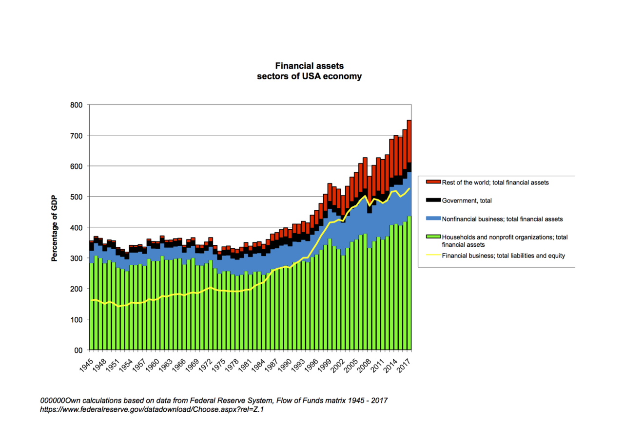 | Roots In the American experience, increased financialization occurred concomitant with the rise of neoliberalism and the free-market doctrines of Milton Friedman and the Chicago School of Economics in the late twentieth century. Various academic economists of that period worked out ideological and theoretical rationalizations and analytical approaches to facilitate the increased deregulation of financial systems and banking. In a 1998 article, Michael Hudson discussed previous economists who saw the problems that resulted from financialization.[7] Problems were identified by John A. Hobson (financialization enabled Britain's imperialism), Thorstein Veblen (it acts in opposition to rational engineers), Herbert Somerton Foxwell (Britain was not using finance for industry as well as Europe), and Rudolf Hilferding (Germany was surpassing Britain and the United States in banking that supports industry). At the same 1998 conference in Oslo, Erik S. Reinert and Arno Mong Daastøl in "Production Capitalism vs. Financial Capitalism" provided an extensive bibliography on past writings, and prophetically asked[8] In the United States, probably more money has been made through the appreciation of real estate than in any other way. What are the long-term consequences if an increasing percentage of savings and wealth, as it now seems, is used to inflate the prices of already existing assets - real estate and stocks - instead of creating new production and innovation? |
