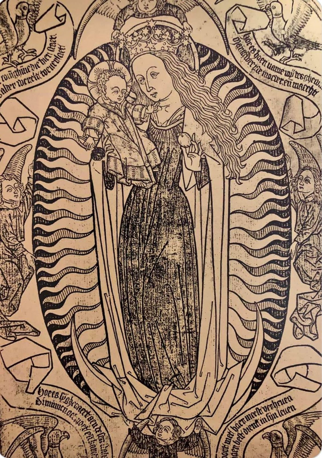 1420年ごろ、ベルリンで印刷された「栄光の聖母像」作者不明、ロンドン・ワーブルグ研究所所蔵