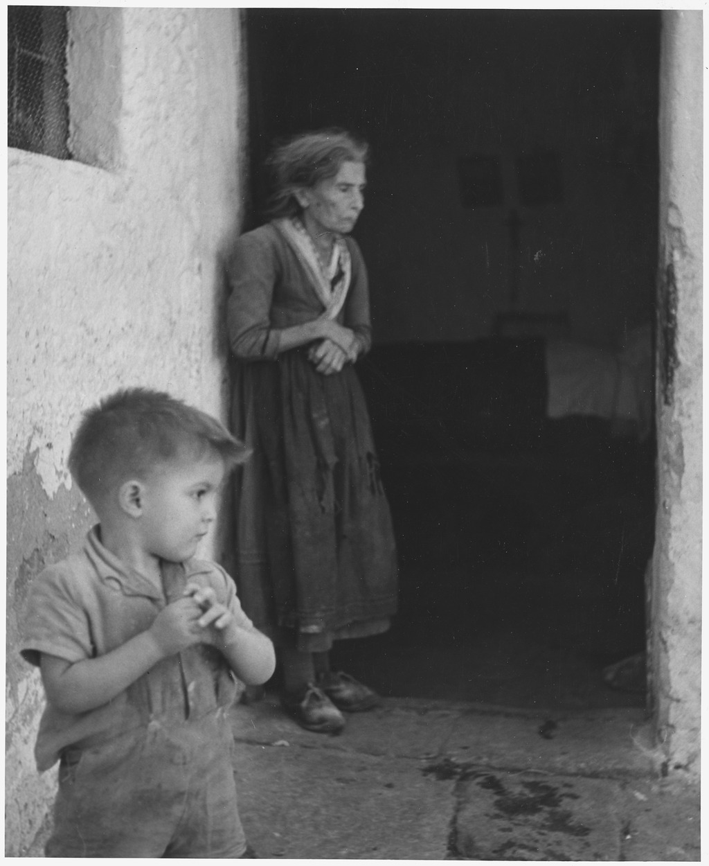 A small boy of Matera, Italy, unconsciously repeats the gesture of his grandmother's hands, ca. 1948 – ca. 1955