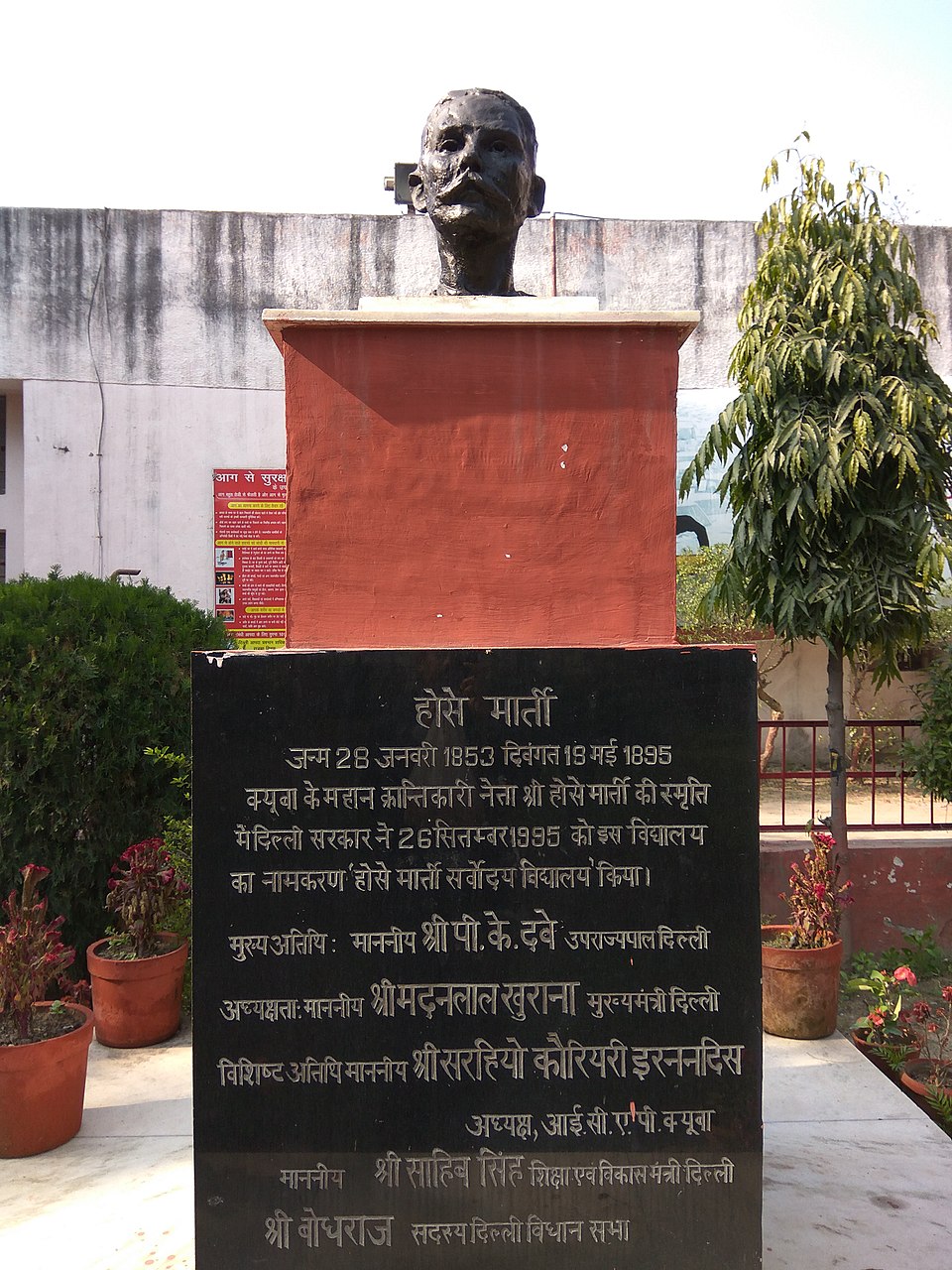 | Translation José Martí is universally honored as a great poet, patriot and martyr of Cuban Independence, but he was also a translator of some note. Although he translated literary material for the sheer joy of it, much of the translating he did was imposed on him by economic necessity during his many years of exile in the United States. Martí learned English at an early age, and had begun to translate at thirteen. He continued translating for the rest of his life, including his time as a student in Spain, although the period of his greatest productivity was during his stay in New York from 1880 until he returned to Cuba in 1895.[82] ![]() Statue of Jose Martí in a government school named after him in Delhi In New York he was what is known today as a "freelancer," as well as an "in house" translator. He translated several books for the publishing house of D. Appleton, and did a series of translations for newspapers. As a revolutionary activist in Cuba's long struggle for independence he translated into English a number of articles and pamphlets supporting that movement.[83] In addition to fluent English, Martí also spoke French, Italian, Latin and Classical Greek fluently, the latter learned so he could read the Greek classical works in the original.[84] There was clearly a dichotomy in Martí's feeling about the kind of work he was translating. Like many professionals, he undertook for money translation tasks which had little intellectual or emotional appeal for him. Although Martí never presented a systematic theory of translation nor did he write extensively about his approach to translation, he did jot down occasional thoughts on the subject, showcasing his awareness of the translator's dilemma of the faithful versus the beautiful and stating that "translation should be natural, so that it appears that the book were written in the language to which it has been translated".[85] |