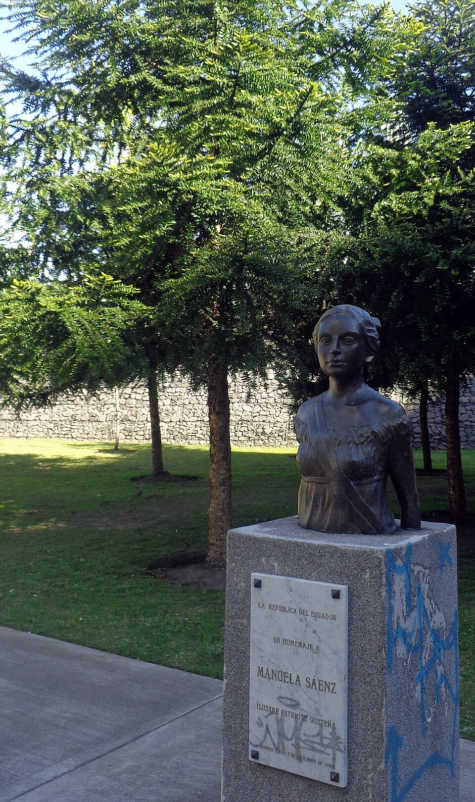 「太陽の貴婦人」)を授与された。 サエンツは1817年に裕福な英国人医師と結婚し、ペルーのリマで社交界の人となった。これが政治や軍事に関与するきっかけとなり、彼女は革命運動の支援 に積極的に取り組んだ。1822年に夫と別れた後、彼女はすぐにシモン・ボリバルと8年にわたる協力関係と親密な関係を築き、それは1830年にボリバル が亡くなるまで続いた。1828年にボリバルに対する暗殺未遂を阻止し、彼の脱出を手助けした後、ボリバルは彼女を「解放者の解放者 (Libertadora del libertador)」と呼び始めた。彼女が書いたある手紙の中で、彼女は「解放者は不滅である」と主張しているが、実際には彼の生存は彼女のおかげ だった。[1] マヌエラの革命における役割は、20世紀後半までほとんど注目されていなかったが、現在では19世紀の独立戦争のフェミニストの象徴として認識されてい る。 |