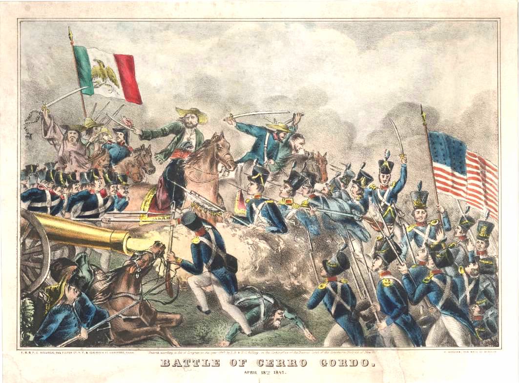 国の領土を南西方向に拡大しようとしたジェームズ・K・ポーク米国大統領によって大きく推進された。 攻撃側の米国軍は、メキシコ北部で一連の戦いに勝利した。1847年、3月にベラクルスにアメリカ軍が上陸し、9月にメキシコシティを占領したことで、戦 争は決着した。1848年2月2日に締結されたグアダルーペ・イダルゴ条約により、アメリカは広大な領土を獲得し、その領土は太平洋にまで拡大した。 |