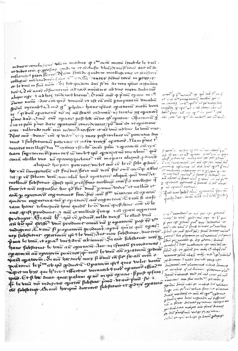 哲学と神学 影響 プロクロスのパルメニデス注釈のラテン語訳の写本の1ページ。ニコラウス・クースの手書きの注釈が書き込まれている(ベルンカステル・クース、聖ニコラウス病院図書館、写本186、fol. 125r)。 クザヌスは、中世後期に活躍した思弁的神学者の一人であり、マイスター・エックハルトが彼に大きな影響を与えた。彼はエックハルトのラテン語の著作のみを 利用し、ドイツ語の説教は利用しなかった。彼が自ら余白に注釈を記したエックハルトの写本は現存している。エックハルトの死後まもなく、彼の神学上の説の 多くが教皇勅書によって異端と断罪されたため、ほとんどの場合、彼の引用は匿名で行われていた。クザヌスも同様であった。彼がエックハルトに明示的に言及 したのは、2つの著作、すなわちラテン語の説教と『無知の弁明』だけである。『弁明』の中で、彼はヨハネス・ウェンクによる汎神論の非難に対して、自身と エックハルトを擁護した。彼は、エックハルトは正統的な信仰を持っていたものの、その発言は誤解されやすいため、一般の人々には不向きであると記している [21]。 古代末期の新プラトン主義者プロクロスは、クザーヌスに多大な影響を与えた。プロクロスの思想は、1442年頃に『De coniecturis』で初めて登場している。プロクロスが名指しで直接引用されたのは、1458年の『De beryllo』が最初である。クザーヌスの晩年の著作では、プロクロスが重要な役割を果たしている。プラトンの『パルメニデス』に関する彼の注釈、 1462 年以降の『プラトンの神学』、そして『神学入門』も散見される。[22] さらに、クザーヌスは、新プラトン主義に由来する思想を、偽ディオニュシオス・アレオパギタやアルベルトゥス・マグヌスの著作、特にアルベルトゥスのディ オニュシオス注釈、そしてアルベルトゥスの教えをトマス主義者たちから擁護した友人ヘイメリクス・デ・カンポの著作からも得ていた。そこでは、アルベルト がすでに接近していた、相反するものの同時存在という概念が特に重要だった[23]。 クザーヌスは、ライムンドゥス・ルルスからも重要な刺激を受けた。しかし、彼はルルスを引用することはほとんどなく、その名前に言及したのは2回だけであ る。この慎重な姿勢は、パリ大学神学部で禁止されていたルルスの教義が物議を醸していたことに関係していると思われる。[24] |