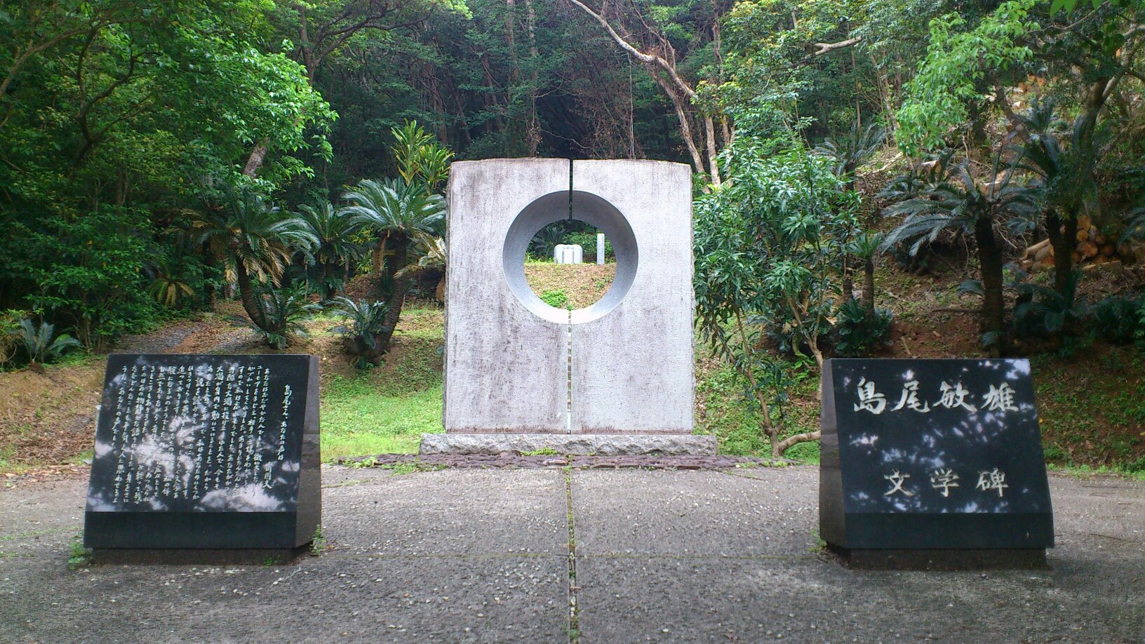 特攻隊体験![]() 1944年夏の島尾敏雄海軍大尉(当時は少尉) ![]() 加計呂麻島呑之浦基地跡にある島尾敏雄文学碑 1943年の9月末、九州帝国大学を半年繰り上げで卒業したのち、陸軍での内務班生活を嫌って海軍予備学生を志願した島尾敏雄は、はじめ飛行科を志願し、 予備学生試験の当日の判定では航空適性であったが一般兵科に採用され、旅順の教育部へ入った[7]。基礎教育期間を終了したあとの術科学校の希望書に暗 号、一般通信に加え、惰弱と思われるのが嫌で第三希望に魚雷艇部門を記入したところ採用され、第一期魚雷艇学生として1944年2月から横須賀市田浦の海 軍水雷学校で訓練を受けた。当時魚雷艇部門は創設されたばかりであり、また術科の専門部門では一番の危険配置とされていた。 同年4月から長崎県川棚町の臨時訓練所で水雷学校特修学生として過ごすうち、特攻の志願が認められた。猶予期間として一日の休暇が与えられ、就寝前に志願 の可否を紙に書いて提出するかたちで募られたという。5月には海軍少尉の任官を受け、震洋の配置が決まった[7]。10月には第十八震洋特攻隊指揮官とし て、180名ほどの部隊を率いて奄美群島加計呂麻島呑之浦基地へ赴いた。その地で更に訓練を重ね、出撃命令を待つ日が長く続いた[7]。 島の人々にとり、それまで本土から来た軍人たちは威圧的で馴染めないものがあったが、特攻隊の隊長・島尾は言葉づかいが丁寧で島民の生活への配慮があった [7]。また、墜落した敵機操縦士の遺骸を手厚く埋葬する人間性から、次第に島の人々から尊敬や信頼を集めるようになり、「ワーキャジュウ(我々の慈 父)」とまで呼ばれ、「あれみよ島尾隊長は人情深くて豪傑で……あなたのためならよろこんでみんなの命を捧げます」という歌までできるようになった [7]。 そして、この島で小学校教師をしていた大平ミホも島尾隊長に惹かれ、島尾も南島の妖精のようなミホに惹かれて2人は恋仲になった[7]。1945年6月に は沖縄が米軍に完全制圧され、死が間近に迫ってきたことが伝わってきたが、その少し前に島尾はミホに献じる形で童話風の短編「はまべのうた」を書いていた [7]。 1945年8月13日の夕方に特攻戦が発動され出撃命令を受けた。そのことを上等兵曹から聞いたミホは、島尾が出撃したら自分も短剣で喉を突き海中に身を 投げる覚悟で入江の浜に正座していた[7]。その日は敵艦隊が姿を見せず、発進の号令を受け取らぬまま14日の朝を迎えた。震洋での特攻戦は夜襲を原則と していたため日中の出撃はありえず機会は翌晩まで延期されることとなった[7]。 その日の正午に大島防備隊司令部から全指揮官参集の命令を受け、翌15日に即時待機状態のままラジオで「終戦の詔勅」(玉音放送)を聞き島尾は敗戦を知る [7]。しかし、なかなかその実感がなく、隊員の中には「詔勅」の後も出撃を主張する者も出た[7]。島尾隊長もしばらくは寝る時も日本刀を肌身離さず、 死の緊張から解放されたものの、隊員らはやり場のない抑鬱状態となった[7]。 米軍が加計呂麻島に来た場合、特攻隊員は狙われやすいため、搭乗員撤退の手続きが進められる中、島尾はミホの父・大平文一郎にミホとの結婚の許しを得た後、隊員らを引き連れて本土に向かい、佐世保で隊は解散した[7]。 復員後、島尾は実家のある神戸で文学活動を開始する。伊東静雄を度々尋ね、はじめ庄野潤三、林富士馬、三島由紀夫らと『光耀』を創刊し、戦争体験の言語化 がはかられたが、手書きの謄写版刷りの3号で最終刊となった[8]。その後、同じく伊東静雄の下に集まっていた富士正晴らと『VIKING』を創刊する [8]。そうした活動を開始した1946年の3月には、ミホを神戸に呼び寄せ結婚した[8]。 『VIKING』へ掲載した中篇「単独旅行者」、「島の果て」が野間宏の目に触れ、1948年5月、『近代文学』系の雑誌『芸術』へ「単独旅行者」が転載 されることとなり文壇に認められた[8]。また、デビュー第2作「夢の中での日常」も花田清輝、佐々木基一らの『綜合文化』10月刊(真善美社)へ掲載さ れ[9]、未遂に終わった死によるアイデンティティーの宙づり状態をモチーフに、悪夢に憑かれた作家を印象づけ注目された[8]。翌月6月には埴谷雄高ら の雑誌『近代文学』へ第二次同人として参加する[8]。 この頃から、執筆活動と並行して、生活のため神戸山手女子専門学校(現・神戸山手短期大学)の非常勤講師のかたわら、神戸市立外事専門学校(現・神戸市外国語大学)の助教授となった[8]。神戸市立外事専門学校では文芸部同人誌に「私の文学的信条」などを寄稿した[8]。 1950年5月、新日本文学会の雑誌『新日本文学』へ掲載した「ちっぽけなアヴァンチュール」が井上光晴の「書かれざる一章」とともに、日本共産党主流派 (所感派)から「反革命的な作品」「末期的プチブルの作品」だと批判を受け、これに対し編集部や久保田正文、中野重治らが擁護論を展開した[8]。 |