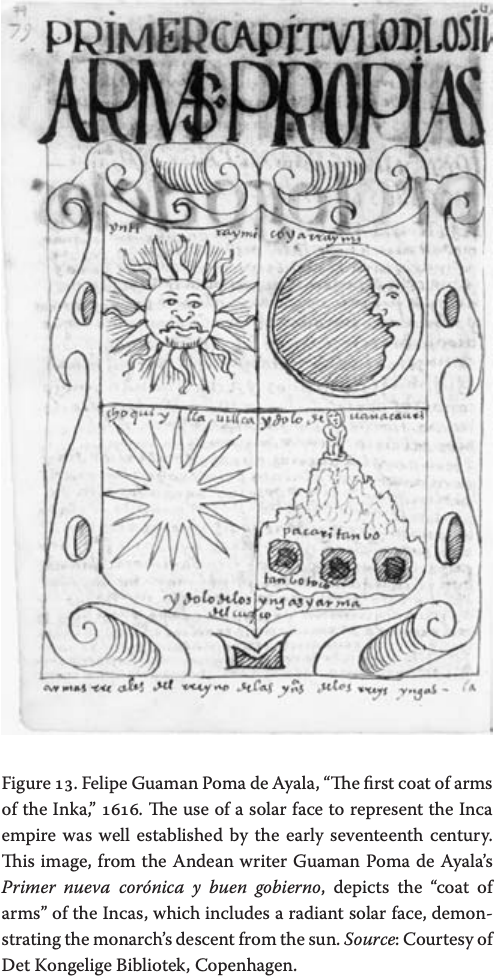 Ayala, “The first coat of arms of the Inka,” 1616. The use of a solar