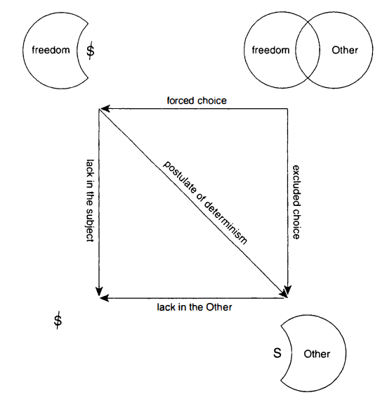 | 第8章 悲劇、そして精神分析の倫理(pp.193-) | ・美学についての講義——悲劇には選択の自由なし(196) ・オイディプス論(199-) ・オイディプスとハムレットの比較論(210-) ![]() シニフィアンの連鎖(S→S') △はキルト縫いして時間を遡り主体($)を形成する(237-238) ・この遡及的意味の決定が、リアルな姿を含めることを成就する ・シーニュ(クローデルの小説の主人公)、またの名を〈残滓の享楽〉(240) ・倫理と脅迫(243)——たしかに、倫理は脅迫とその構造がよく似ている(246) ・ソフィーの選択(243) ・脅迫は、主体化と主体性が破綻する——犠牲を払うように主体を駆り立てることが主体そのものを破壊する(特攻隊志願におけるインフォームドコンセントの強制)(246) ・私が愛さなければならない隣人は、煎じ詰めれば敵(252) ・アラン・バディウ「自称・倫理の使徒たち、異なる権利の伝道師たちは、差異を目の当たりにすると、恐怖を覚える」(255)——バディウ「倫理」原著、24頁 ・享楽=欲望の対象(対象 a)の2つの意味:(1) 〈他者〉の欲望。これは、主体の欲望の原因としての役割を担い、享楽およびその喪失の経験と密接に関係づけられる(たとえば乳房、まなざし、声、糞便、音 素、文字、何でもないようなものなど)。(2) 現実的なものの領域に位置づけられる、象徴化のプロセスの残余。たとえば、論理的な例外やパラドックス、文字や言語のシニフイアン性」 ・カントの言う倫理は、本質的に脅迫の論理である(267)——「あらゆる真実を無効にし、そこから自分自身に戻ろうとするこの虚栄心は、すべての考えを 常 に解消し、内容ではなく、乾いた「私」だけを見つけることができるこの知性に喜びを見出しており、それは、一般性を避け、自己存在だけを追求するため、自 分自身に任せるしかない満足感である」ヘーゲル) ・ラカンのいう〈真実〉は、バディウのいう「出来事」だ(268) ・真実=出来事=脅迫(268) ・カントの極論の問題は、倫理と幸福の関係である(269)——倫理と幸福とはカントは何も関係ないと言いながら、このことを突き詰めると、倫理と幸福は相互に利益を主張しだして、両方の共存は不可能になるというのがジュパンチッチの主張 ・フロイトの無意識における主体の倒錯と欲望の弁証法(1960)(271-272) ・主体の欲望は、耐えられない享楽の染みを拭い去りたいという欲望である(275)=享楽は存在しない/享楽あまねくところにあるの2命題が共存するものとして ・欲望に見切りをつけるとは、自らが持っていないものを与える瞬間である(278) |