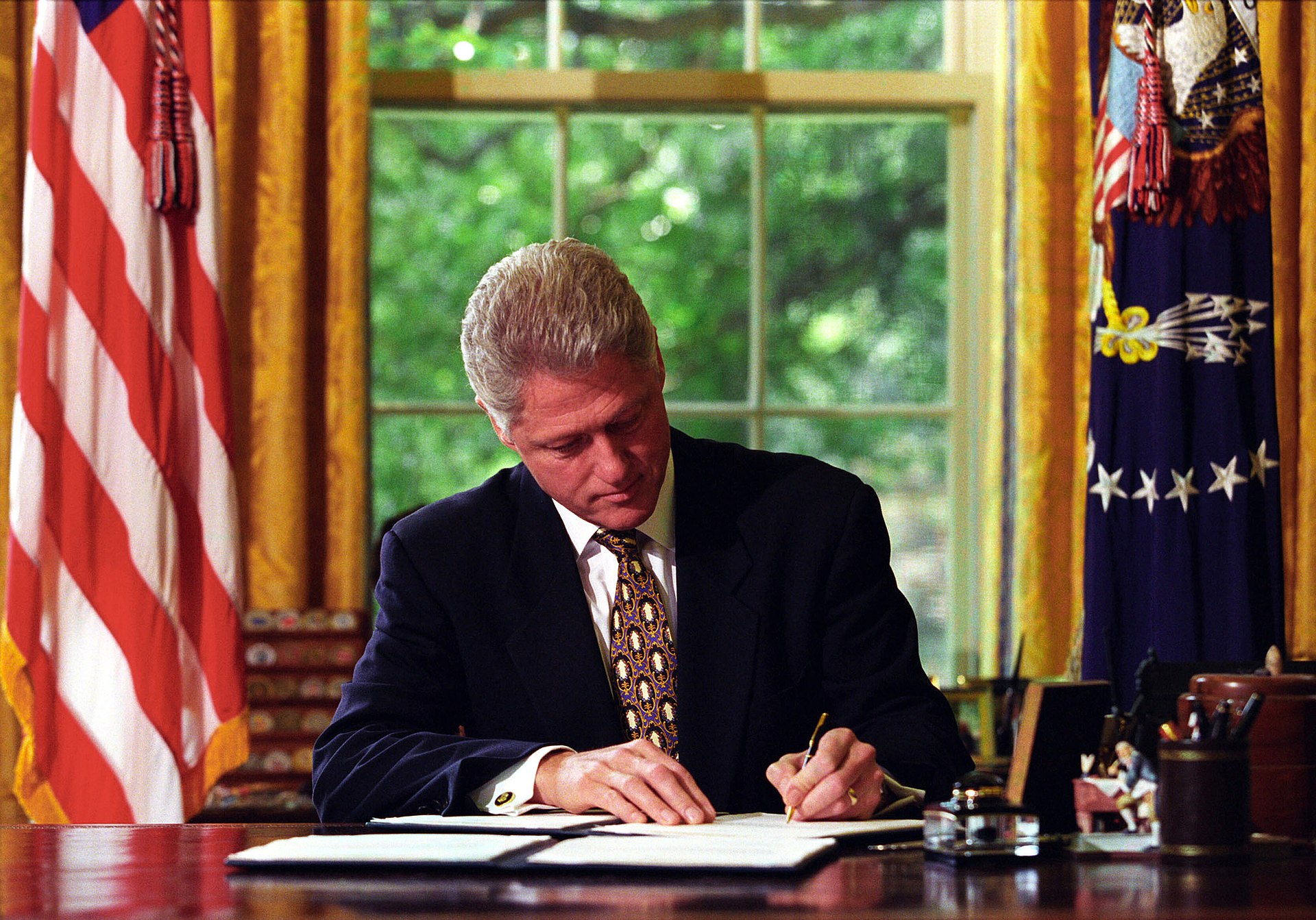 ![]() US President Ronald Reagan signing a veto of a bill |